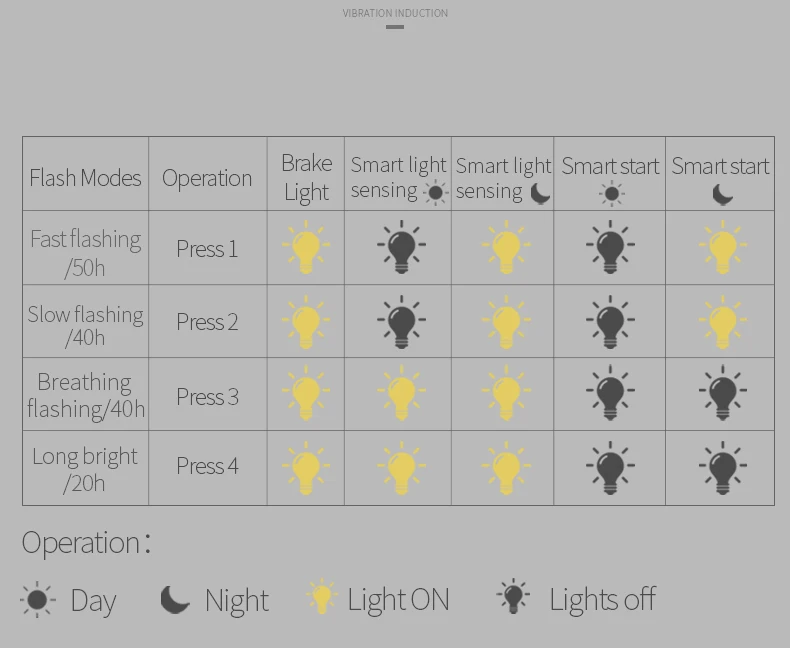 Выключите свет автоматически, когда движение не длится 30 секунд, и включите свет автоматически, когда почувствуете вибрацию (Без учета режима длительной яркости)