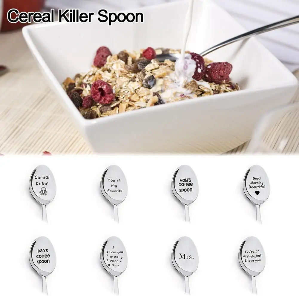 Злаки убийца кухонные столовые приборы кофейная ложка из нержавеющей стали письмо гравировка ложки на день рождения Рождество подарок подросткам