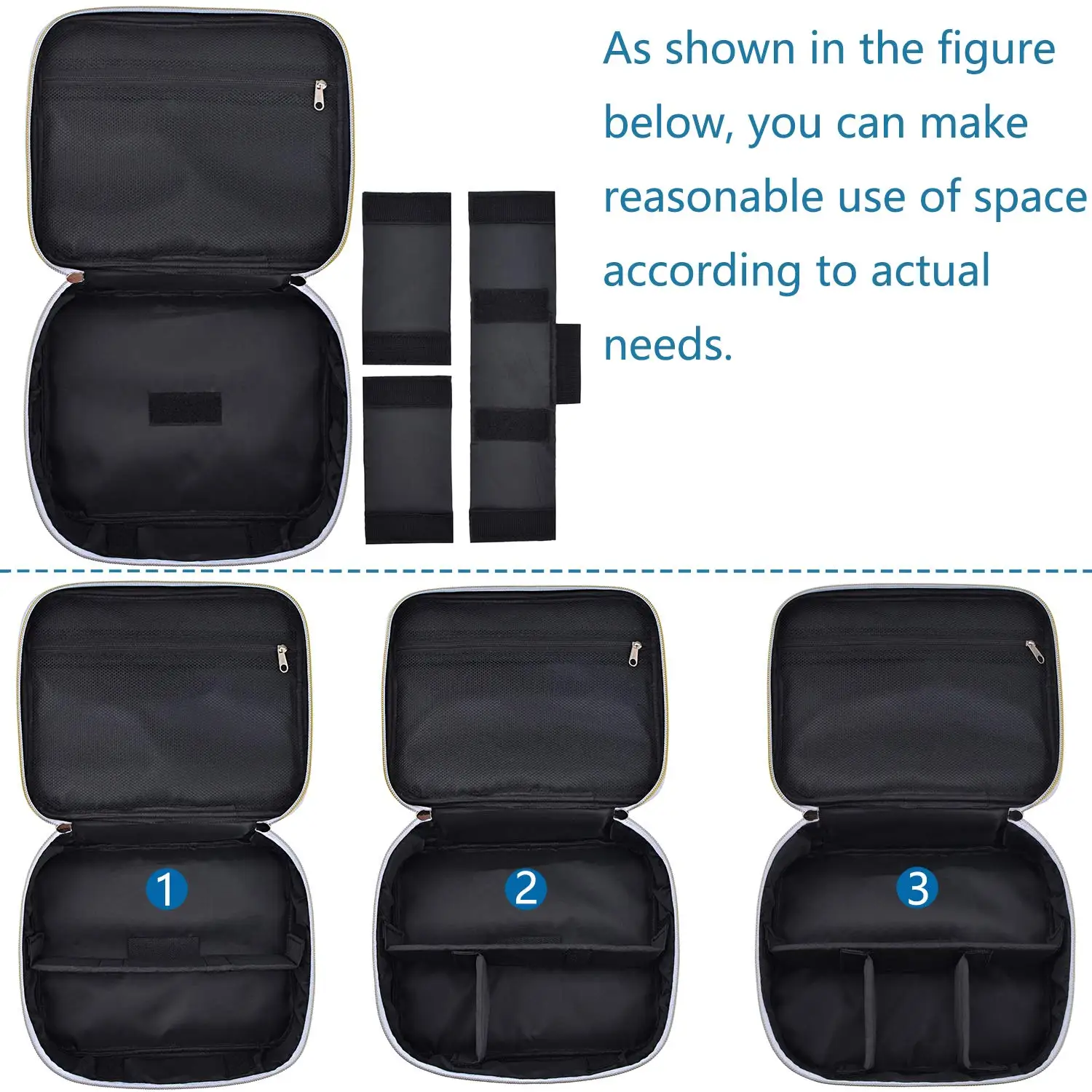 Новый дизайн: портативная дорожная косметичка для путешествий, спроектируйте свои внутренние отделения с помощью регулируемых мягких разделителей, вы можете отрегулировать расположение пространства. (она не содержит макияж) Характеристика: Защита от тряски, защита от износа, защита от проливания интерьеров и простота переноски Прочный Материал: изготовлен из ткани Оксфорд, губка, волшебная палочка Отличная защита: в процессе путешествий, храните косметику внутри, не запутанная. Размеры: 9 "Х 7,5" х 3,35 ". Это будет очень удобно во время путешествий. Легко переносить косметические средства для макияжа, такие как помада, тени для век или мужской набор для бритья