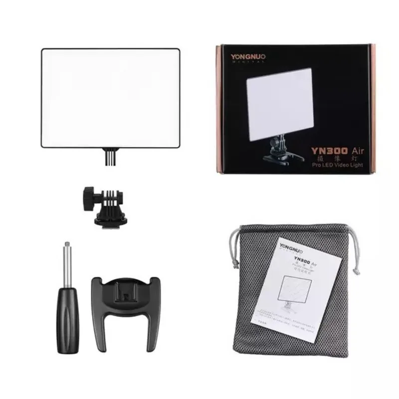 YN300 Air использует светодиодный светильник SMD в качестве источника, обеспечивая мягкий светильник и широкий угол освещения, отлично подходит для наполнения светильник на близком расстоянии. Особенности: Использует светодиодный светильник SMD в качестве источника, обеспечивая мягкий светильник и широкий угол освещения, очень подходит для наполнения светильник на близком расстоянии. Сверхвысокий светодиодный CRI, среднее значение RA больше 95 и ближе к естественному светильник, отлично восстанавливает цвет объекта. Принимает светодиодный постоянного тока дальнего света технологии, избегайте светильник пульсация, стробоскоп, дрожания и других нежелательных явлений во время съемки. Поддержка грубой настройки и тонкой настройки, более точная и надежная. Светодиодный экран для отображения цветовой температуры, яркости и состояния батареи. С аксессуарами, видео светильник может быть установлен на ручке, штативе и камере. (штатив не входит в комплект.) Технические характеристики: Светильник источник света: 96 Светодиодный бусины Цветовая температура: 3200K-5500K Выходная мощность: 18 Вт Световой поток: 2000LM Угол яркости: 110 ° Ультратонкое естественное освещение CRI: ≥ 95 Средний срок службы: 50000 ч Источник питания: Поддержка аккумулятора серии NP-F или внешнего 12 В 2 А или 12 В 5 А постоянного тока (не входит в комплект) Товар Размеры: 18,2*13,2*2,5 см/7,2*5,2 * 1.0in Вес изделия: 256 г/9,1 унций Посылка Размеры: 21*17,5*6 см/8,3*6,9 * 2.4in Вес посылка: 546 г/19,3 унций Примечание: Аккумулятор и питание постоянного тока не входят в комплект. Посылка список; 1 * светодиодный светильник 1 * сумка 1 * Мини-плита 1 * адаптер 1 * ручка 1 * Руководство пользователя (английский и китайский)