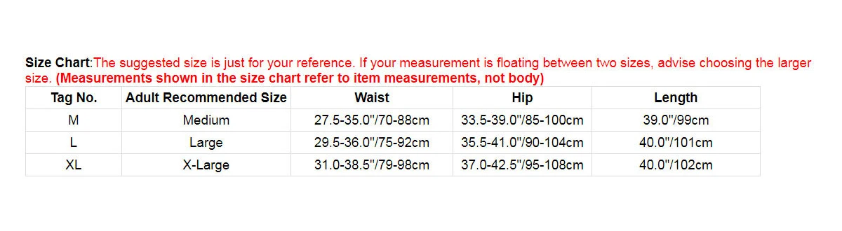 Бирка № Рекомендуемый размер для взрослых Талия Бедра Длина М Средний 27,5-35,0 "/70-88 см 33,5-39,0 "/85-100 см 39,0 "/99 см L Большой 29,5-36,0 "/75-92 см 35,5-41,0 "/90-104 см 40,0 "/101 см XL X-Large 31,0-38,5 "/79-98 см 37,0-42,5 "/95-108 см 40,0 "/102 см Полезные советы: Замеры делаются вручную, поэтому учитывайте небольшие погрешности. Цвет на фото может немного отличаться от реального товара из-за особенностей цветопередачи различных мониторов.Последние несколько лет часто пользуюсь услугами этой компании, частенько делаю заказы, для дома, для детей и для себя любимой, и... Читать отзыв полностью...