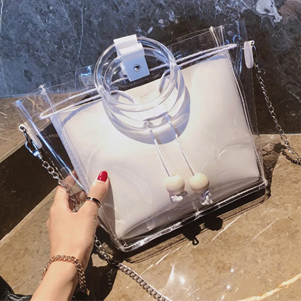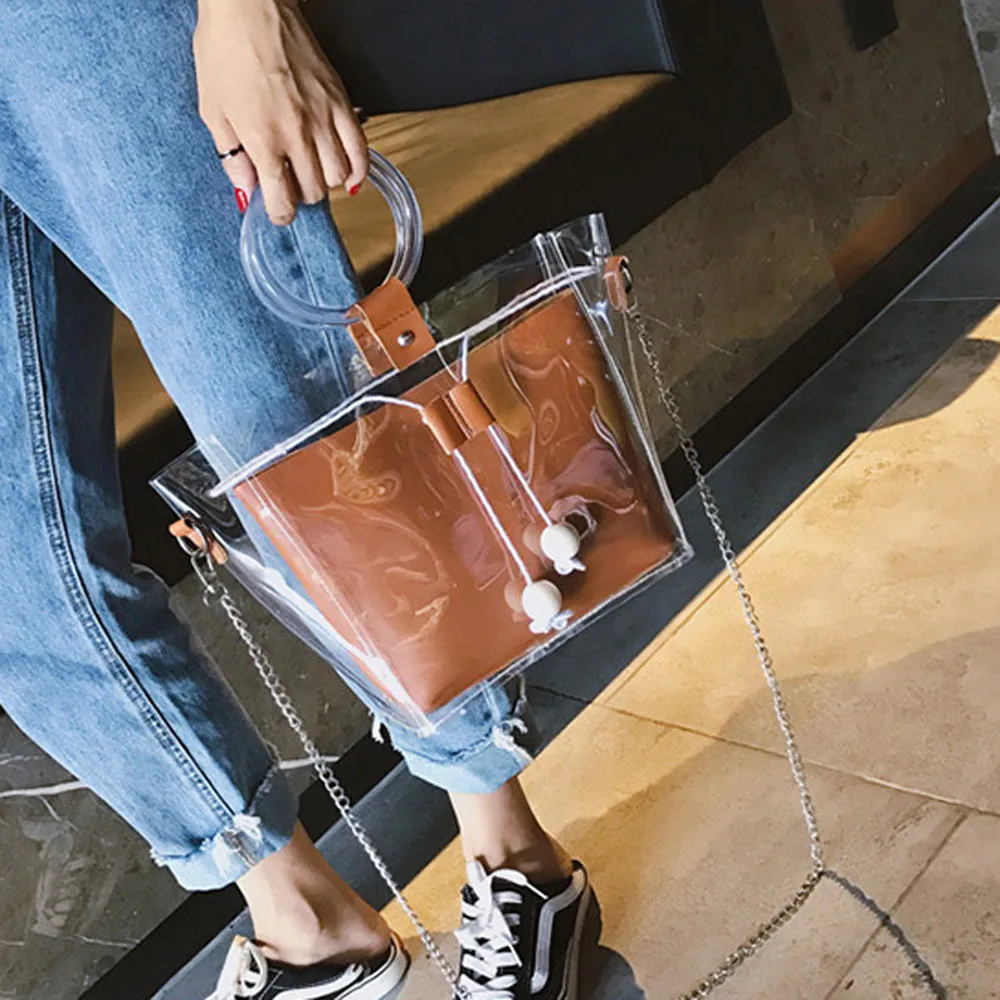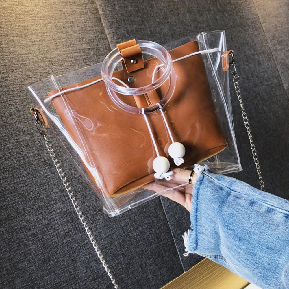 Для девочек Женская сумка сумки на плечо прозрачный шнурок композитный модный простой личности Повседневный темперамент H1