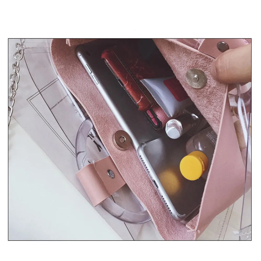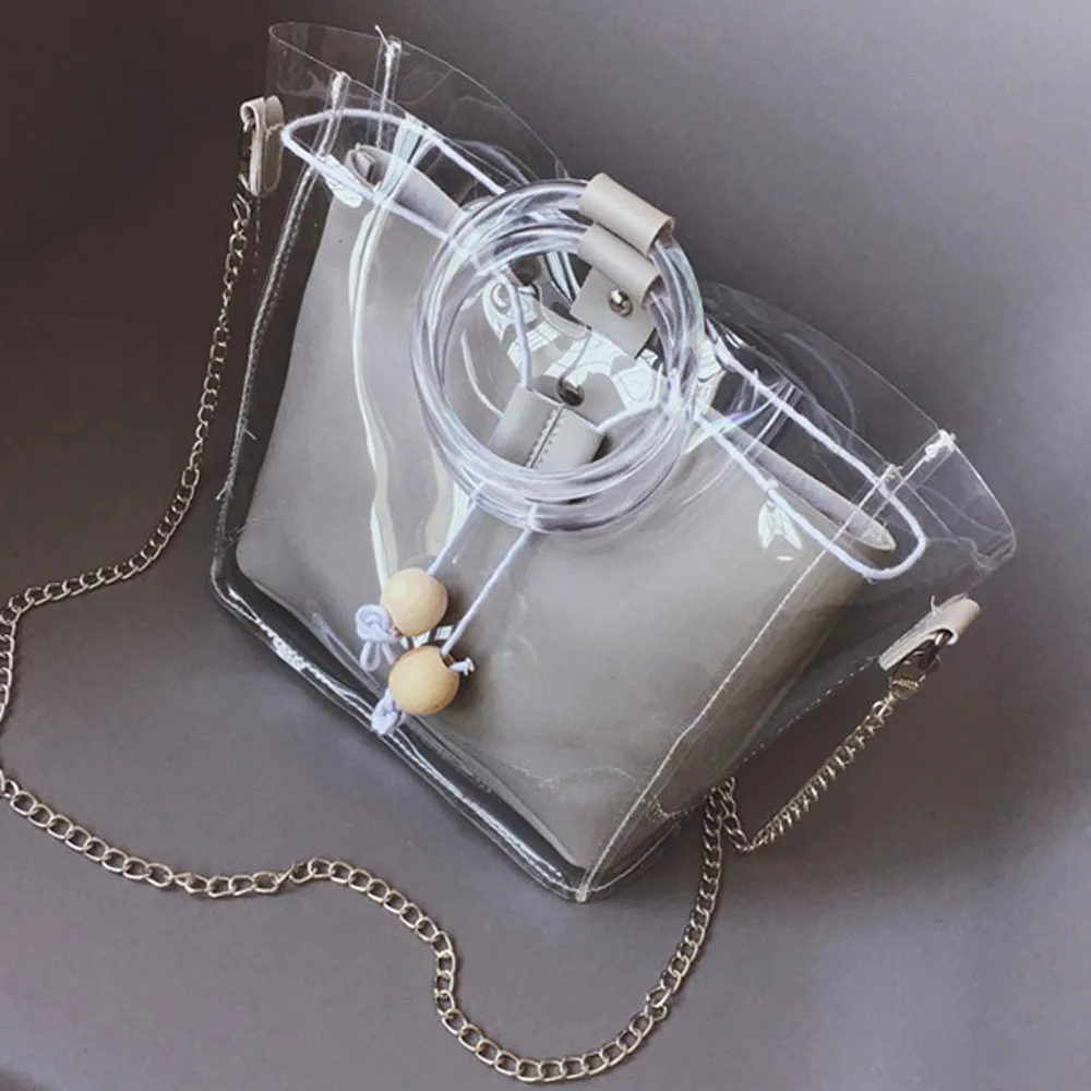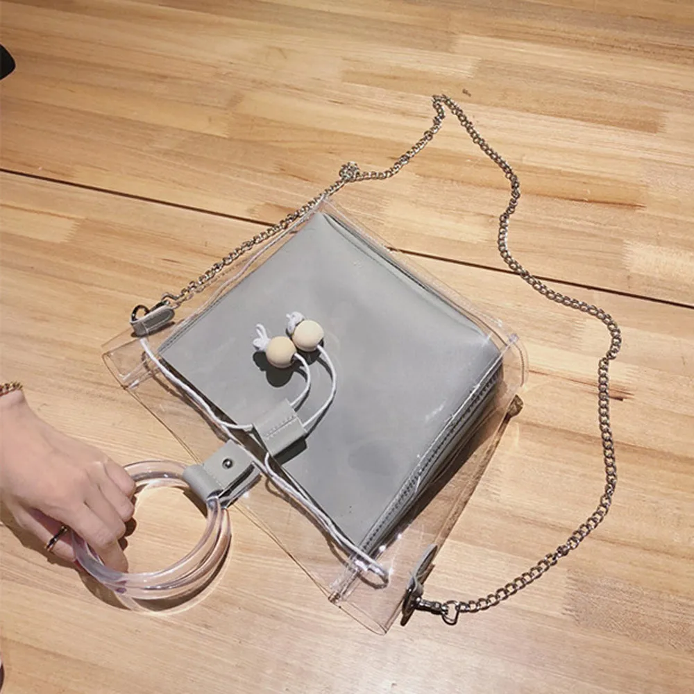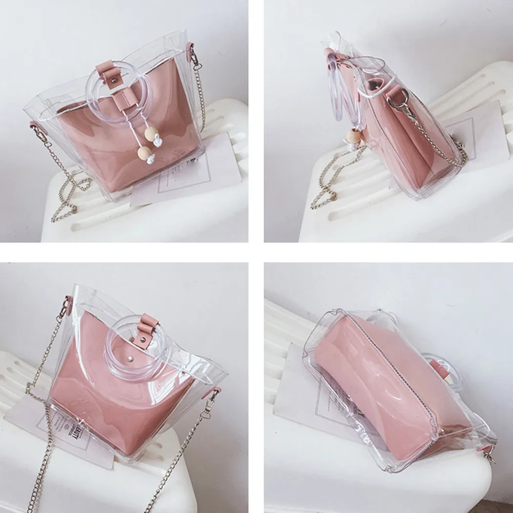 Для девочек Женская сумка сумки на плечо прозрачный шнурок композитный модный простой личности Повседневный темперамент H1