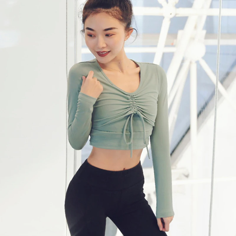 Женский укороченный топ для йоги, Спортивная рубашка с длинным рукавом, Топ 2020, весенне-зимняя спортивная футболка, короткая спортивная одежда, футболка, растягивающаяся
