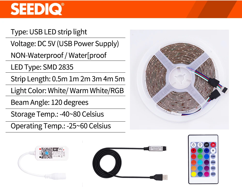 5 в Светодиодная лента USB 2835 SMD 60 светодиодов/м RGB Светодиодная лента светильник водонепроницаемая светодиодная лента ТВ ПОДСВЕТКА светильник Светодиодная лента с дистанционным управлением 24Key 3Key Wifi Бесплатная доставка