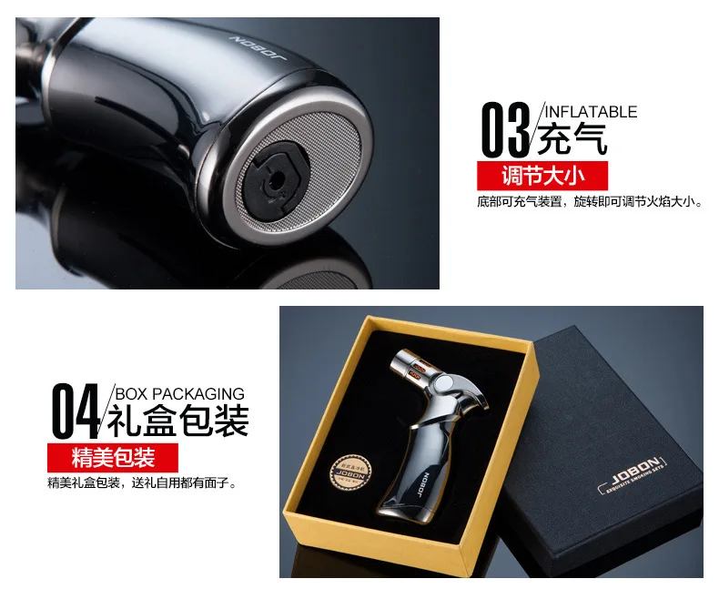 Металлическая зажигалка для сигар, 4 струйный фонарь, синяя зажигалка, многоразовые газовые зажигалки, ветрозащитные зажигалки для сигарет с резаком для сигар CL003
