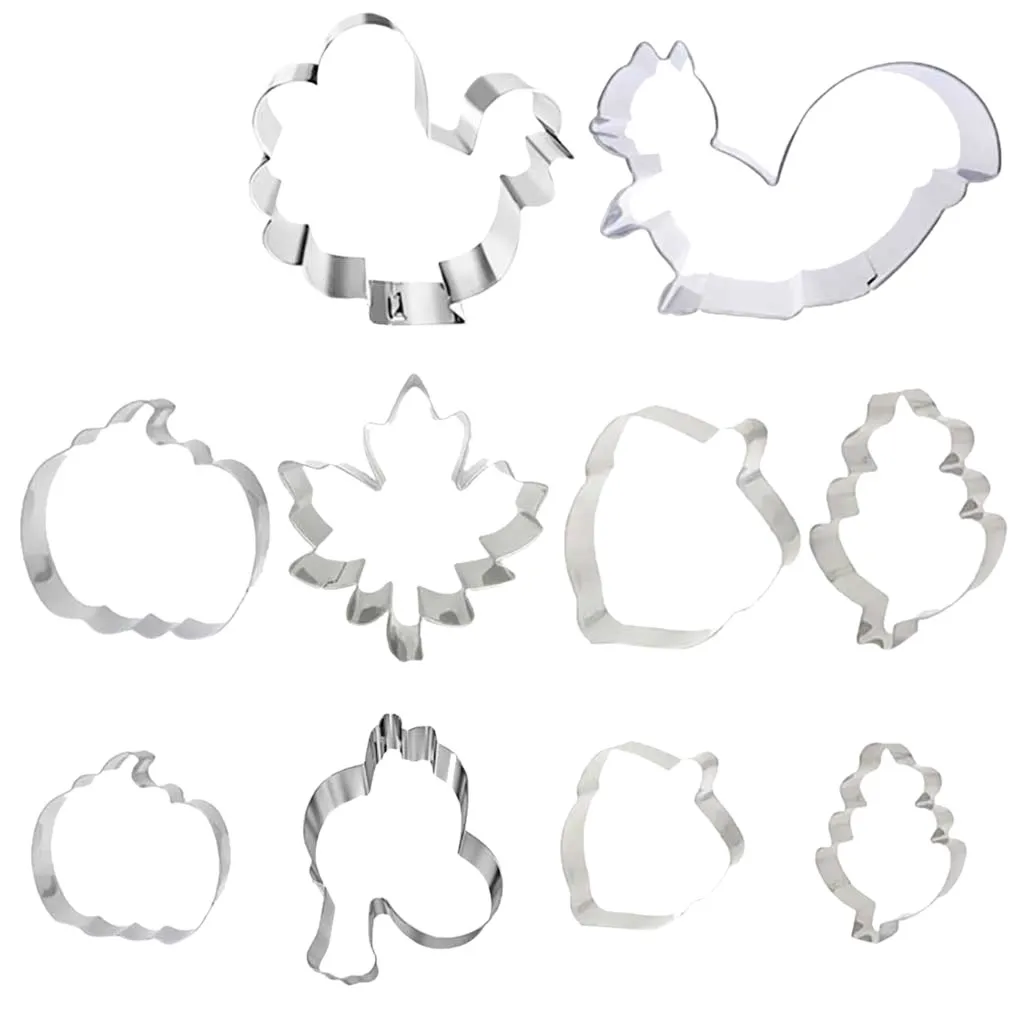 Есть 10 различных форм в наш осенний набор резаков для печенья, вы можете испечь и украсить печенье с этими забавными фигурами.