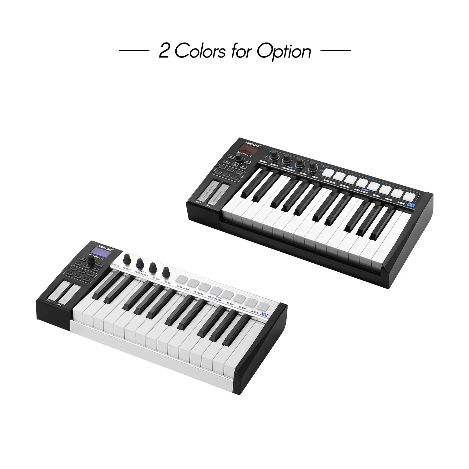 Профессиональная клавиатура MIDI с матовой алюминиевой панелью, четким светодиодный дисплеем и 25 полувзвешенными кнопками после касания.