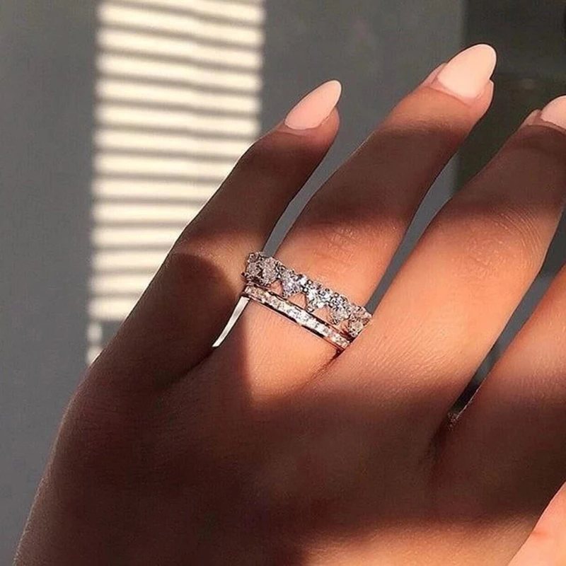 New Trendy Engagement Rings For Women AAA White Zircon Cubic Five Heart Ring Elegant Finger Ring Female Wedding Band Jewerly