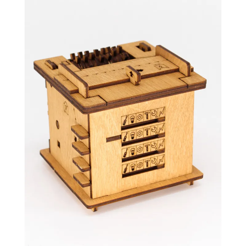 Wooden casket-puzzle, which can be opened by solving all the puzzles. Puzzles for logic, laughter, memory. It may take time, but it's worth it! Inside is an empty box in which you can put a surprise or gift.