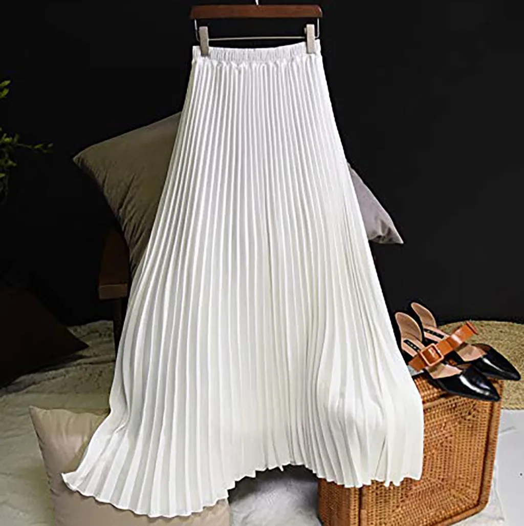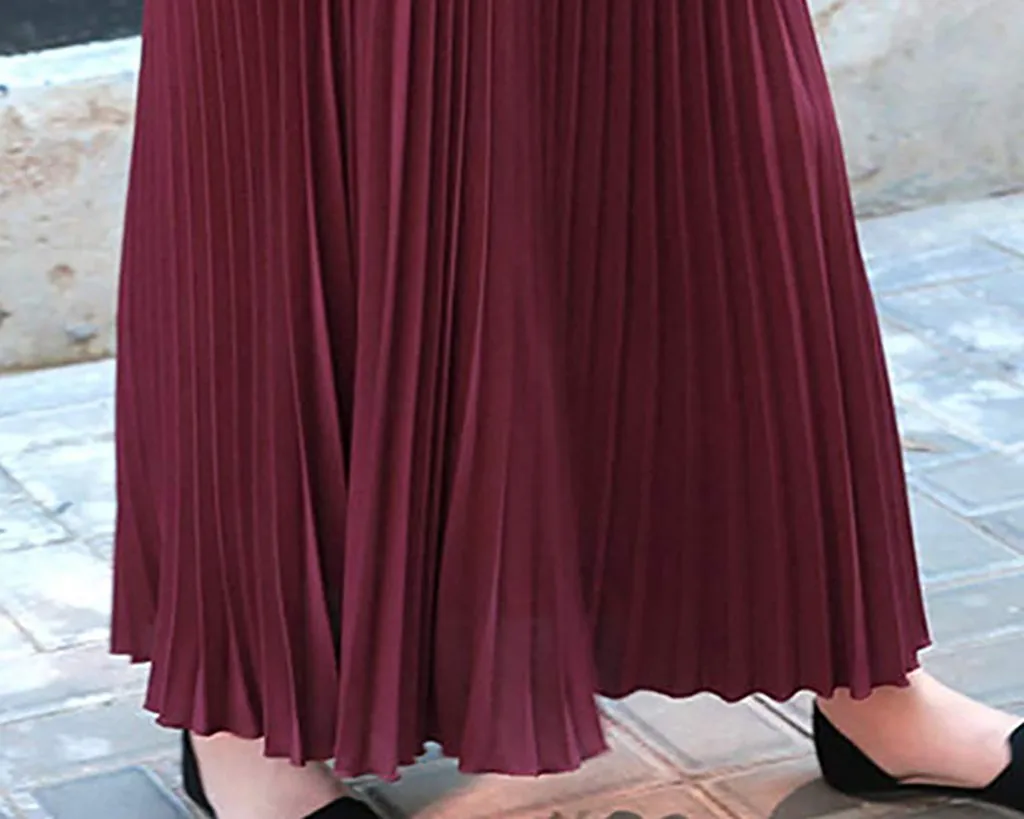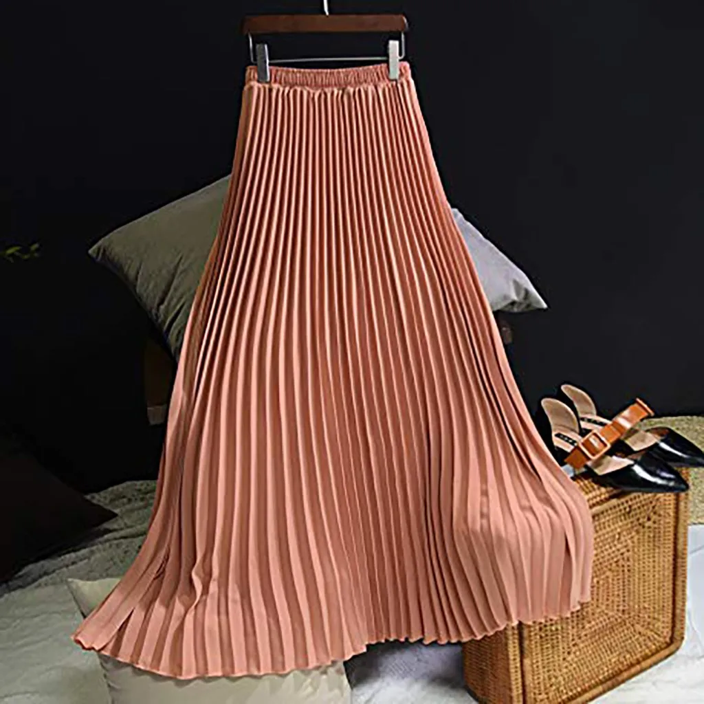 Женская однотонная плиссированная элегантная миди-юбка макси с эластичной талией