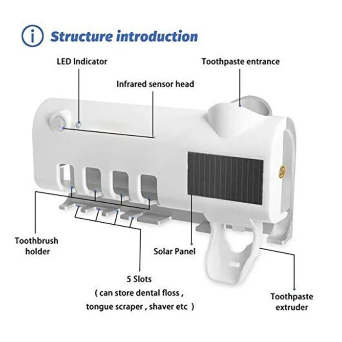 Экономичное устройство для УФ-дезинфекции зубных щеток Держатели на солнечных батареях настенное крепление с диспенсером для зубной пасты ds99