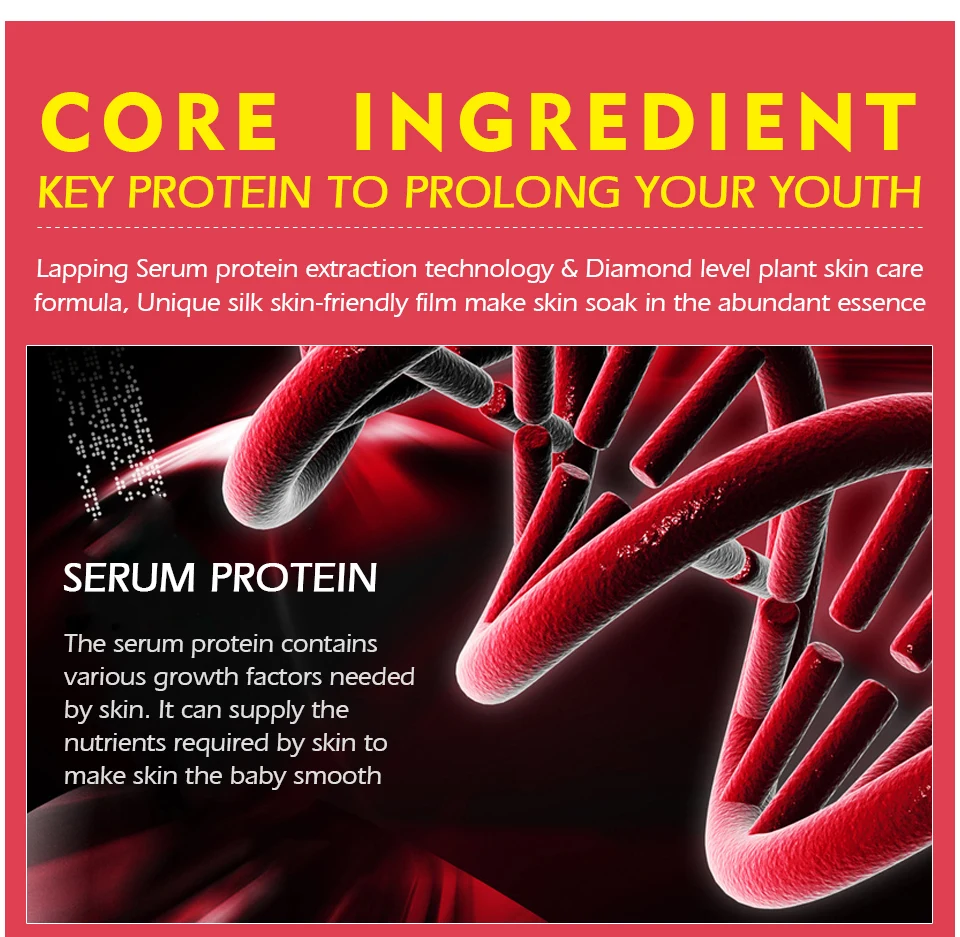 Ядро ingredientkey белка, чтобы продлить вашу молодость притирки Сыворотки экстракции белка технологии и уровень Алмазный кожи завода careformula, уникальные Шелковые приятная на ощупь пленки делает кожу замочить в избытке эссенция Сыворотки протеина Сыворотки белок содержит различные факторы роста neededby кожи. Он может поставить питательных веществ, необходимых кожи tomake кожу малыша гладкая
