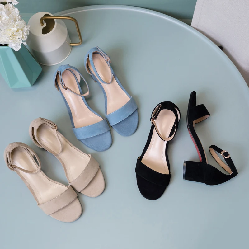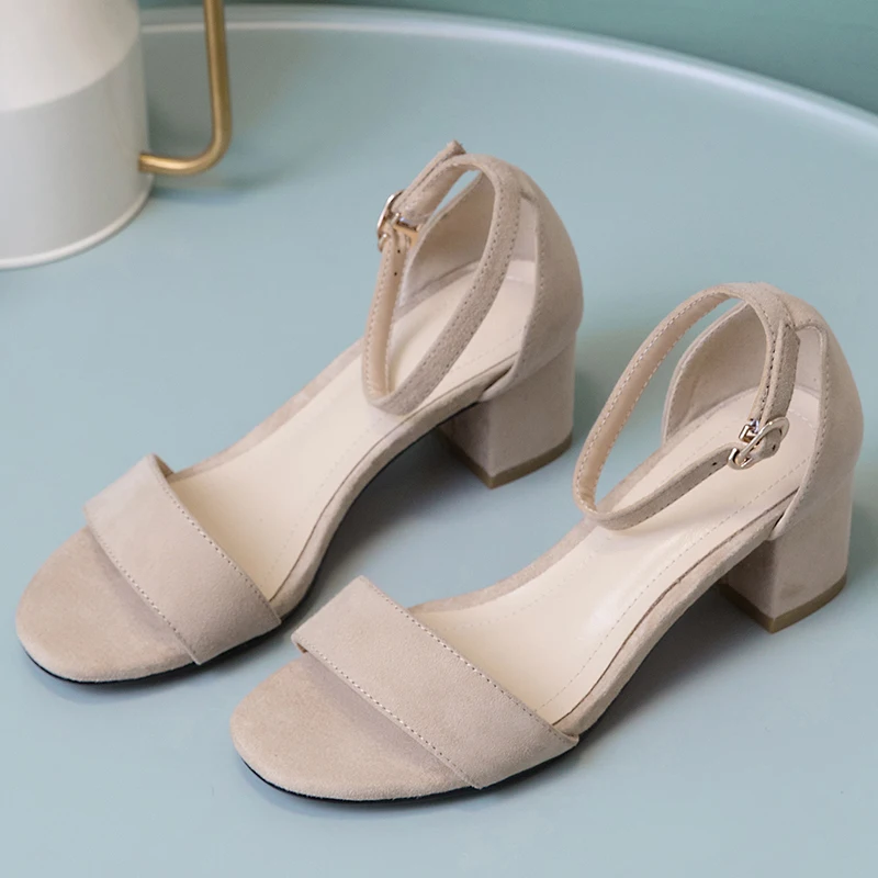 Женские босоножки на высоком каблуке; Летняя женская обувь из овечьей замши с ремешком на щиколотке; Модные женские Босоножки с открытым носком; Цвет абрикосовый, черный, синий; G072