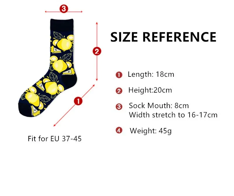 Параметры: 1.100% Фирменная Новинка 2. Материал: 60% хлопок, 25% спандекс, 10% нейлон 3. Размер: Подходит для европейских размеров 37-45 Длина: 18 см Высота: 20 см Пожалуйста, учитывайте отклонение в 1-2 см при измерении вручную. 4. Посылка включает в себя: 1 пара (2 носки) в OPP пакете 5. Инструкции по стирке Стирка при температуре не выше 30, не использовать отбеливатель, сушить в подвешенном состоянии, не гладить, не подвергать химической чистке и т. Д.