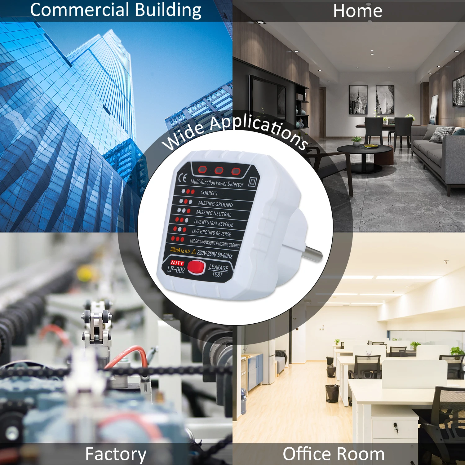 Широкое применение-широко используется для тестирования электрического обслуживания, тестирования офисных розеток, тестирования электролент и тестирования настенных розеток в школе, лаборатории, фабрике и других областях. Это экономит вам много времени при тестировании проблем с розетками.