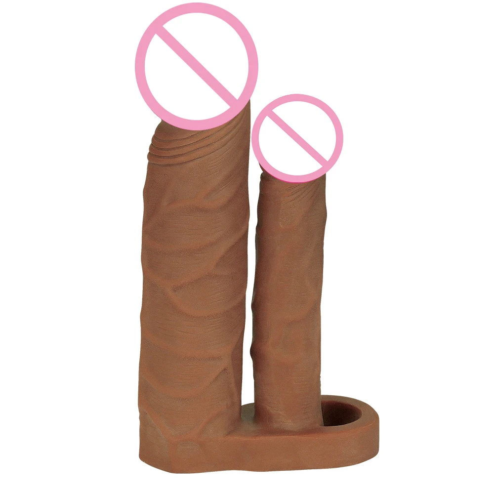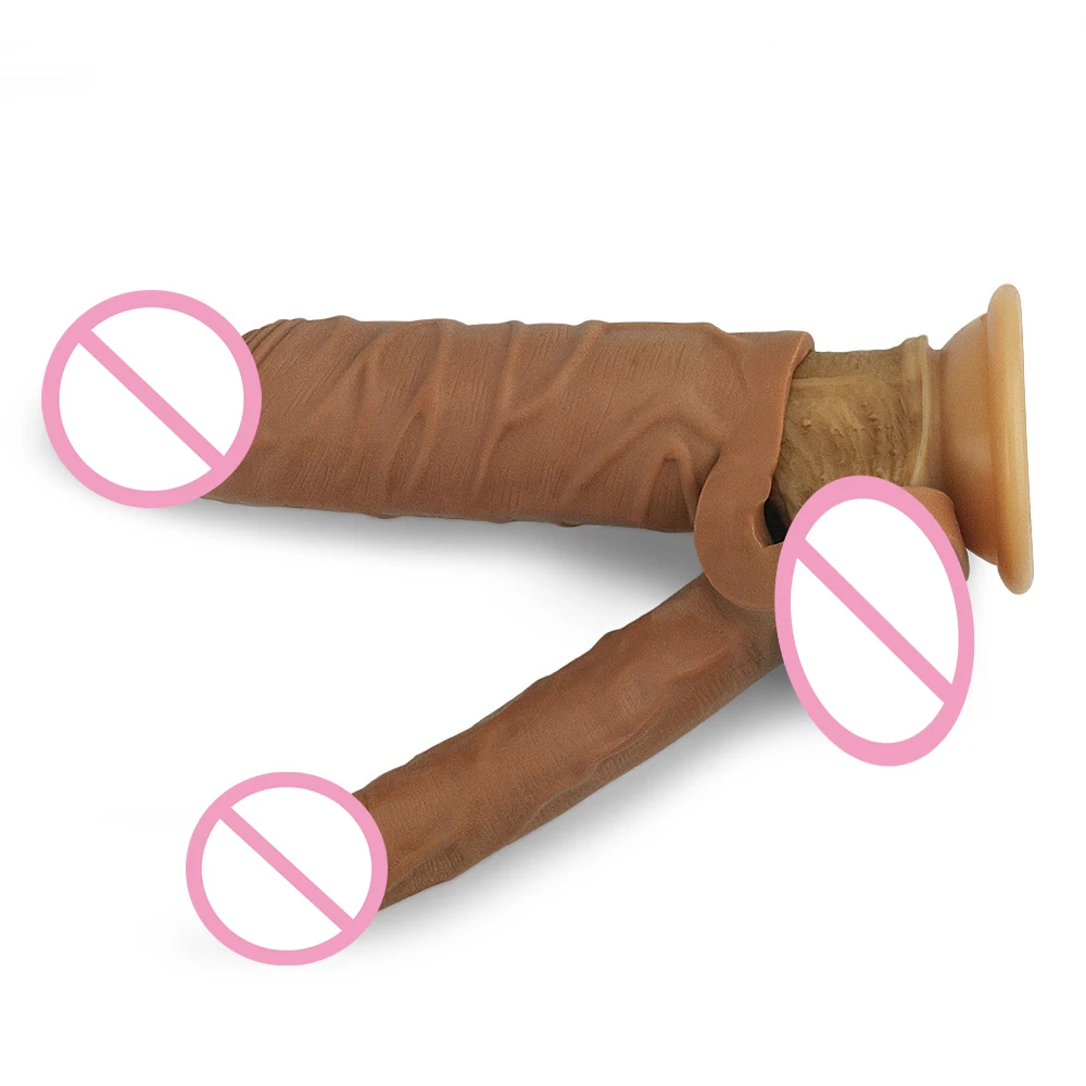 Фаллоимитатор реалистичный пенис удлинитель рукав многоразовые презервативы Двойное проникновение штекер анальный фаллоимитатор интимные товары секс-игрушки для мужчин