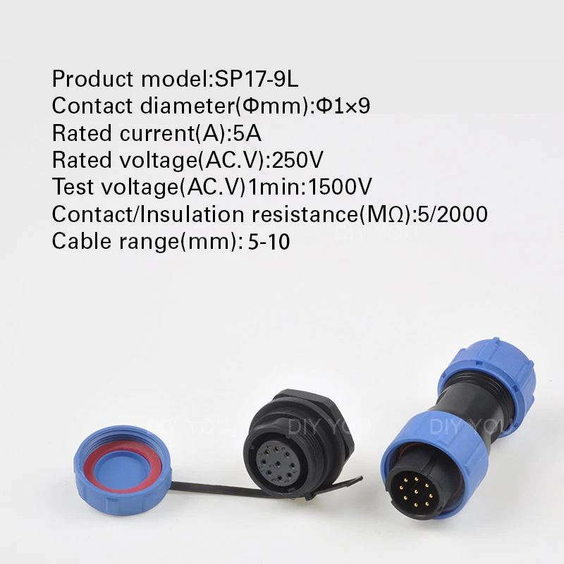 SP17 IP68 задняя гайка тип Электрический Водонепроницаемый разъем 2/3/4/5/7/9 контактный кабель Разъемы авиации с розеткой Тип разъема: SP17 Тип задней гайки Количество контактов: 2/3/4/5/7/9 Pin Уровень водонепроницаемости: IP68 Возраст упаковки (комплект):1 разъем