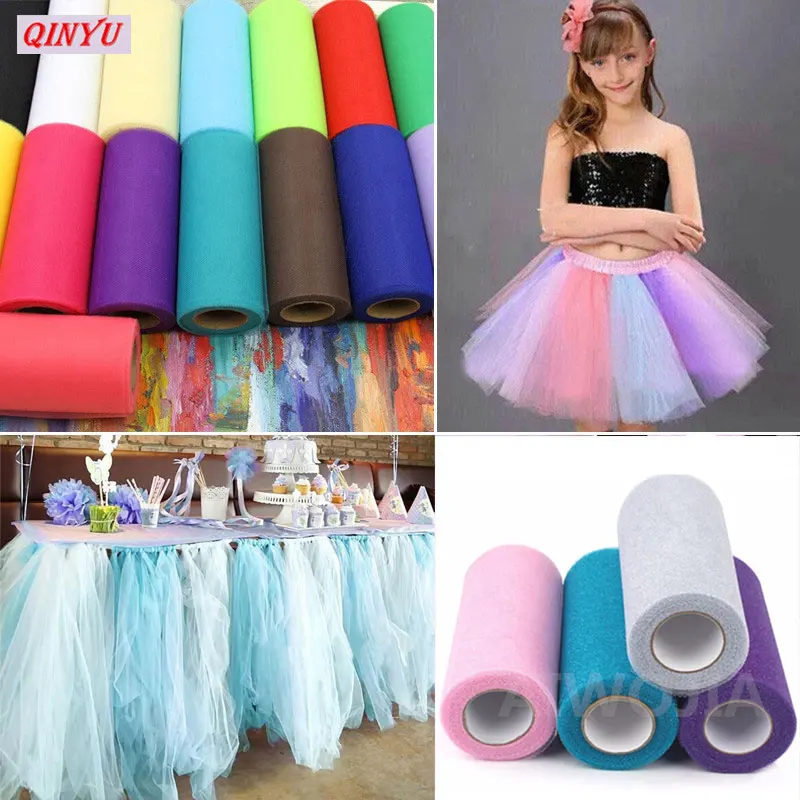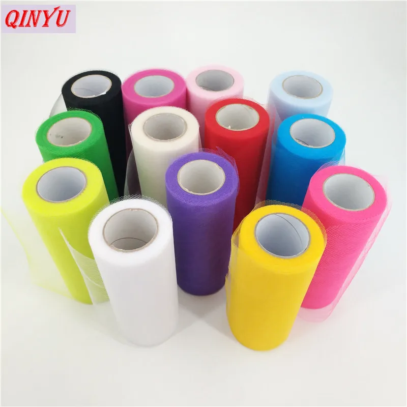 25Yards 15cm Tulle Roll Spool Red Blue Tulle Organza Fabric White Organza Roll DIY Tutu Skirt Girl Baby Shower Party Supplies 5z