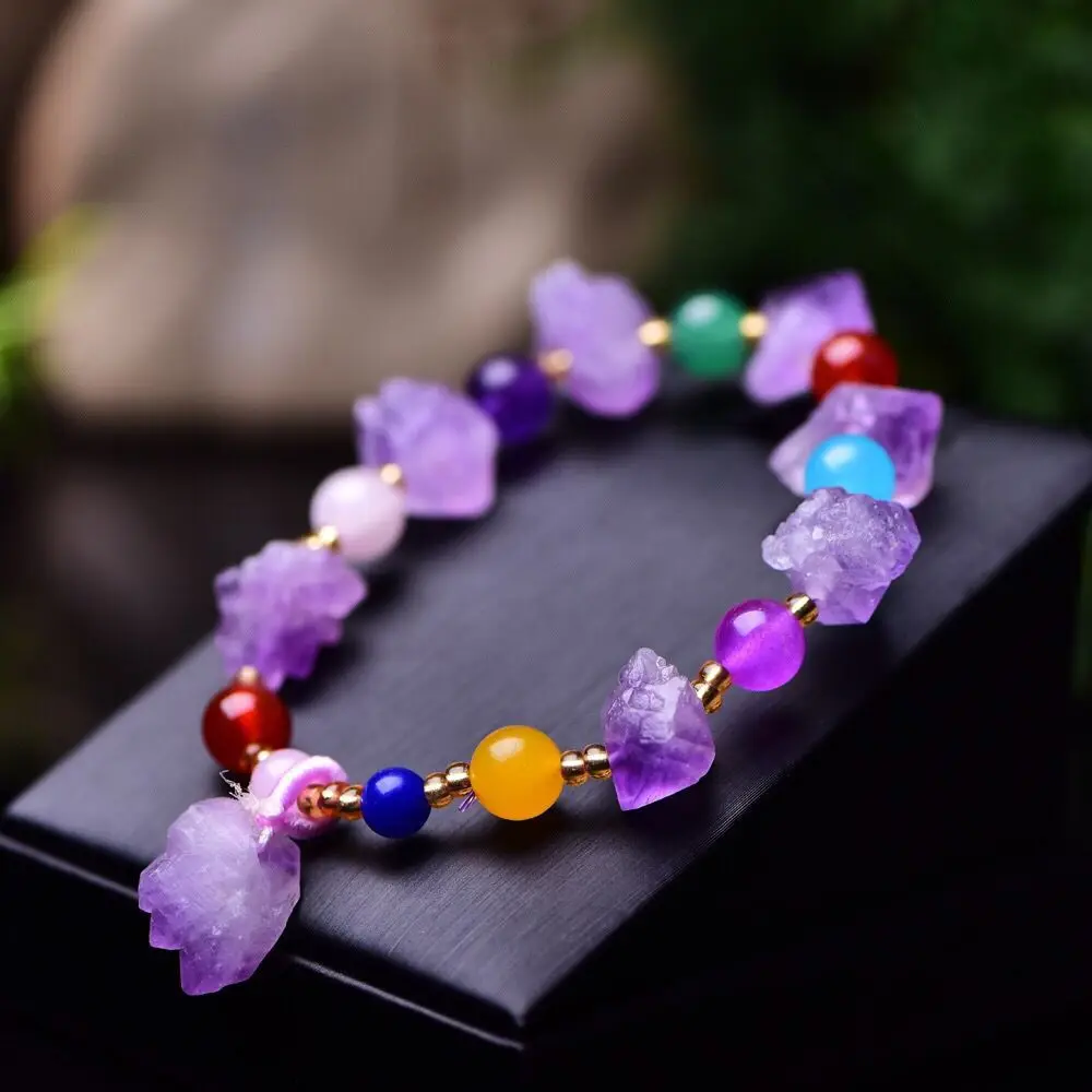 Натуральный драгоценный камень аметист однопетельный кластер браслет Пара Лавандовый браслет модный подарок костюм свидания с аксессуарами