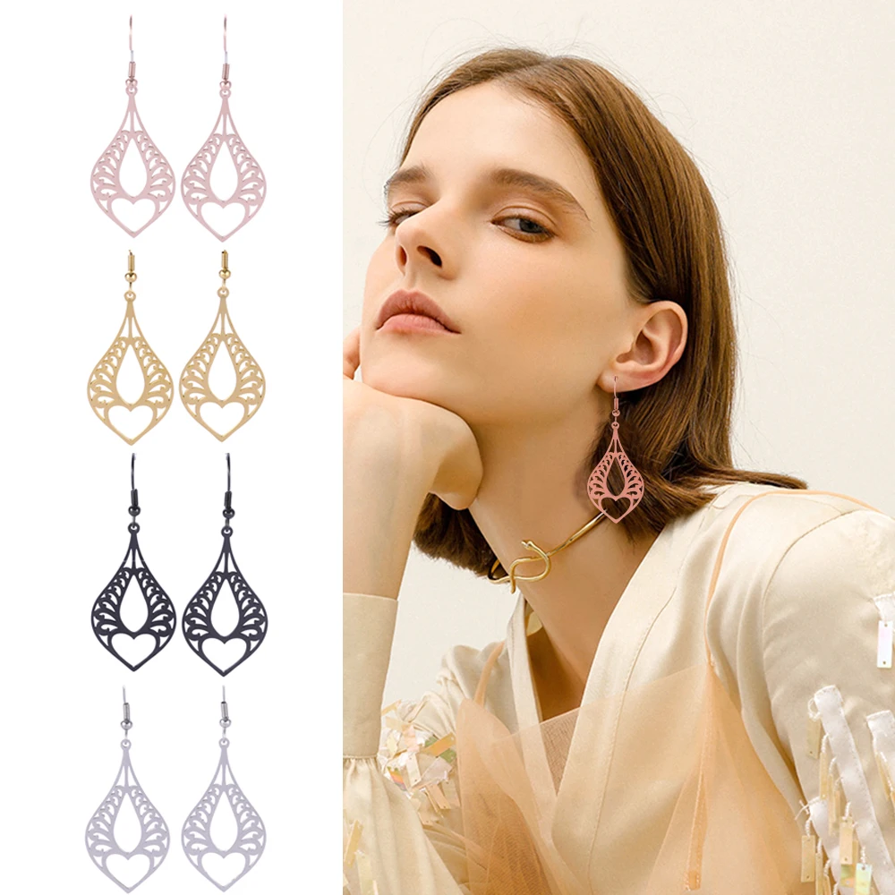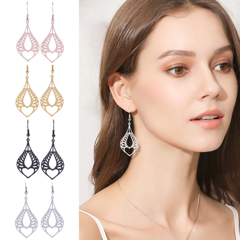 Название: серьги-капельки из нержавеющей стали в моей форме Филигранное сердце любовь свадебные женские висящие серьги в богемном стиле серьги из розового золота ювелирные изделия подарок