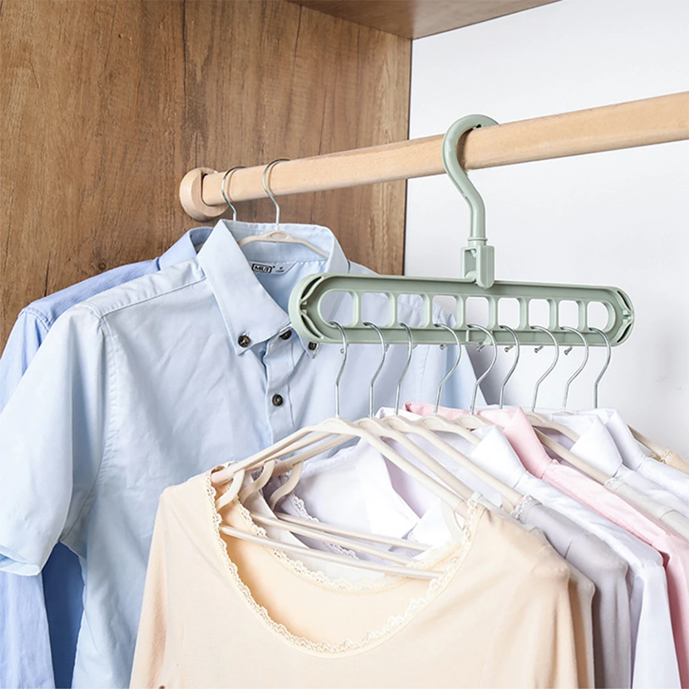 9 отверстий позволяют повесить 9 одежды на одну вешалку или хранить другие вешалки, держать ваши рубашки, брюки и рубашки в форме и без складок.