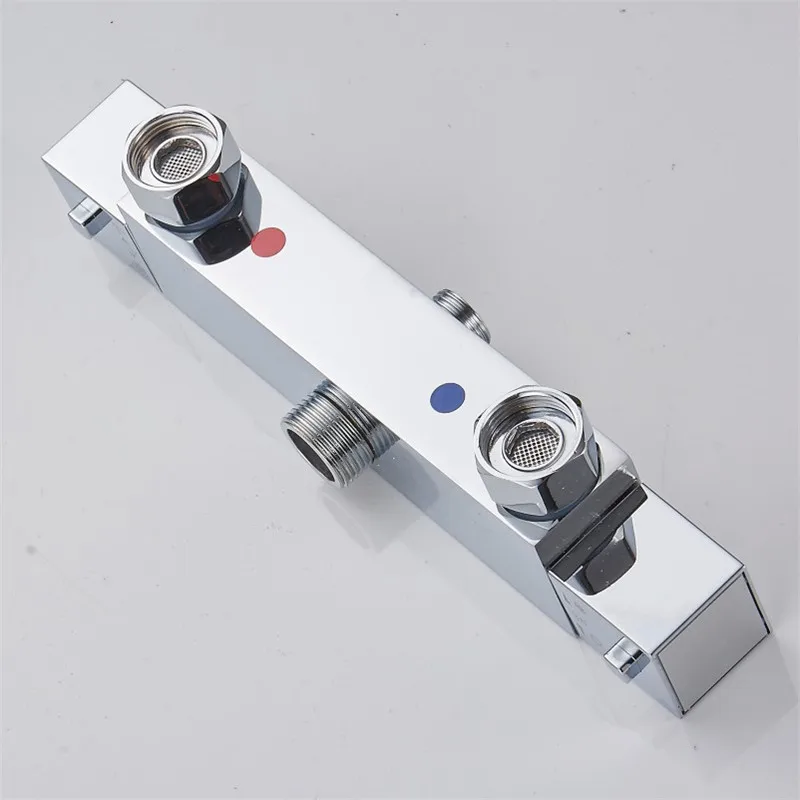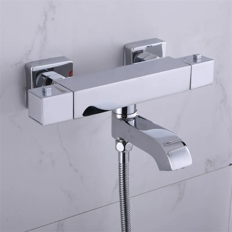 -100% новые и высококачественные. -Водяной термостатический кран для ванной комнаты. -Средний спрей для соли в течение 24 часов. -H59 твердая Латунь с хромированной отделкой. -С носиком для ванны и отводом воды. -Безопасность при температуре воды 38 ℃, безопасность для детей старшего возраста. -Расстояние установки отверстия 150 мм, регулировка 13-17 см. -Красный для горячей воды, синий для холодной воды. -Температура подачи холодной воды: 8-29 °C -Температура подачи горячей воды: 55-85 °C -Диапазон температуры воды на выходе: 20-50 °C -Безопасная Остановка: 38 °C