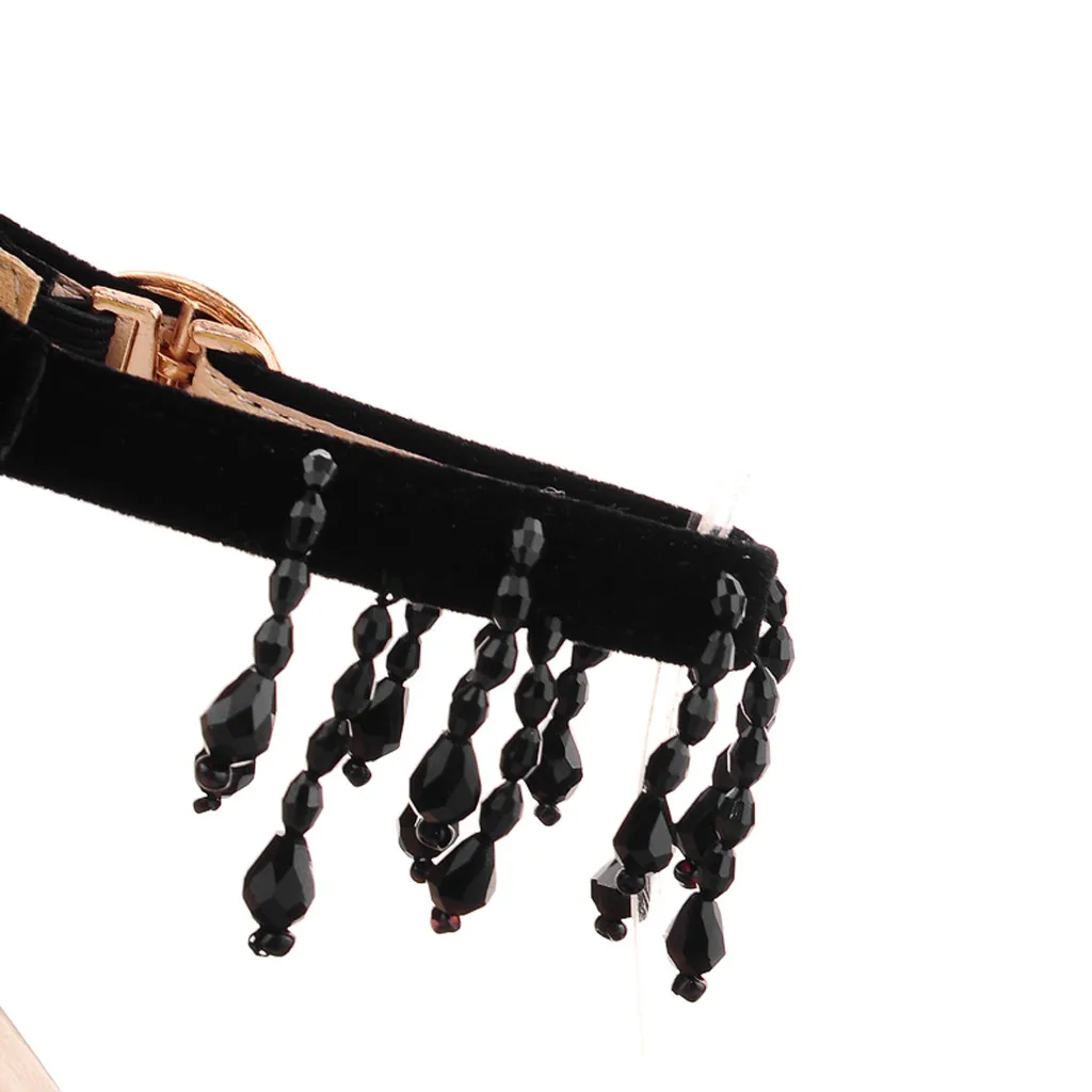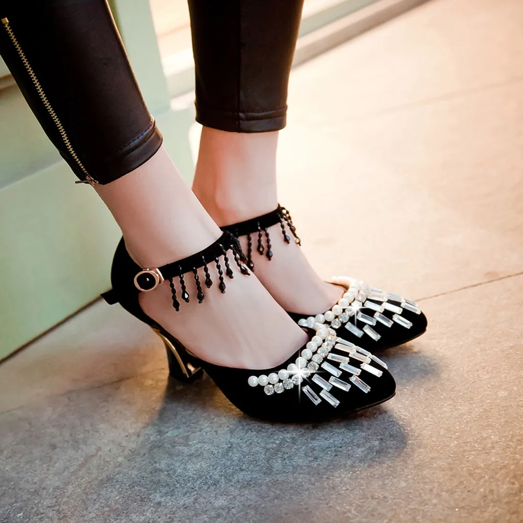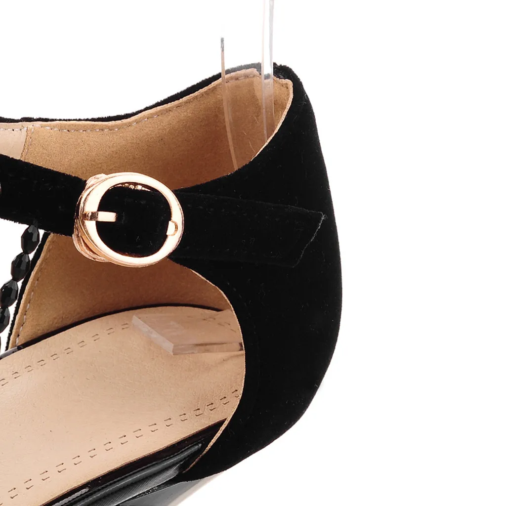 Женские пикантные туфли в стиле ретро с бахромой на высоком каблуке с закрытым носком и ремешком с пряжкой; женские босоножки