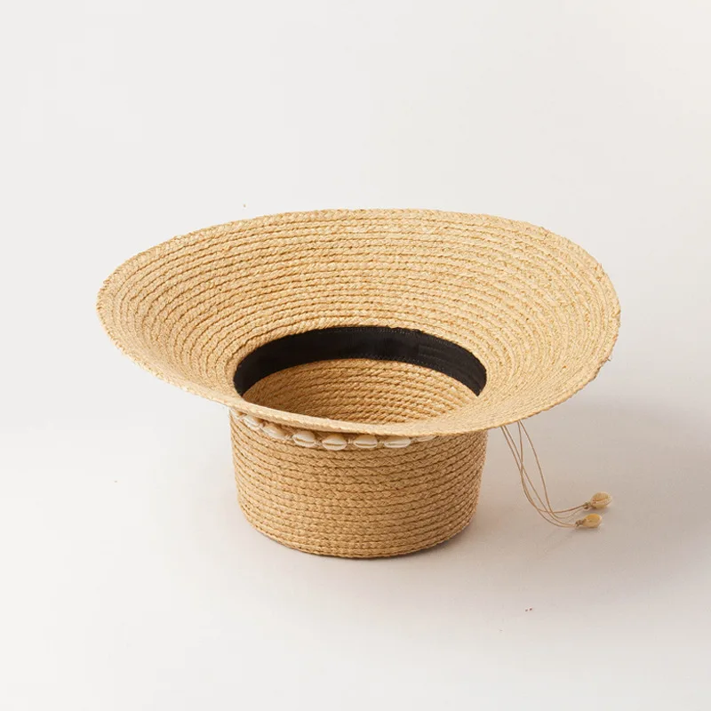 Материал: натуральная Пшеничная солома Обхват: около 57 см Подходит для окружности головы 56-58 см Brim: 14 см, высота: 12 см Подходящий сезон: весна-лето