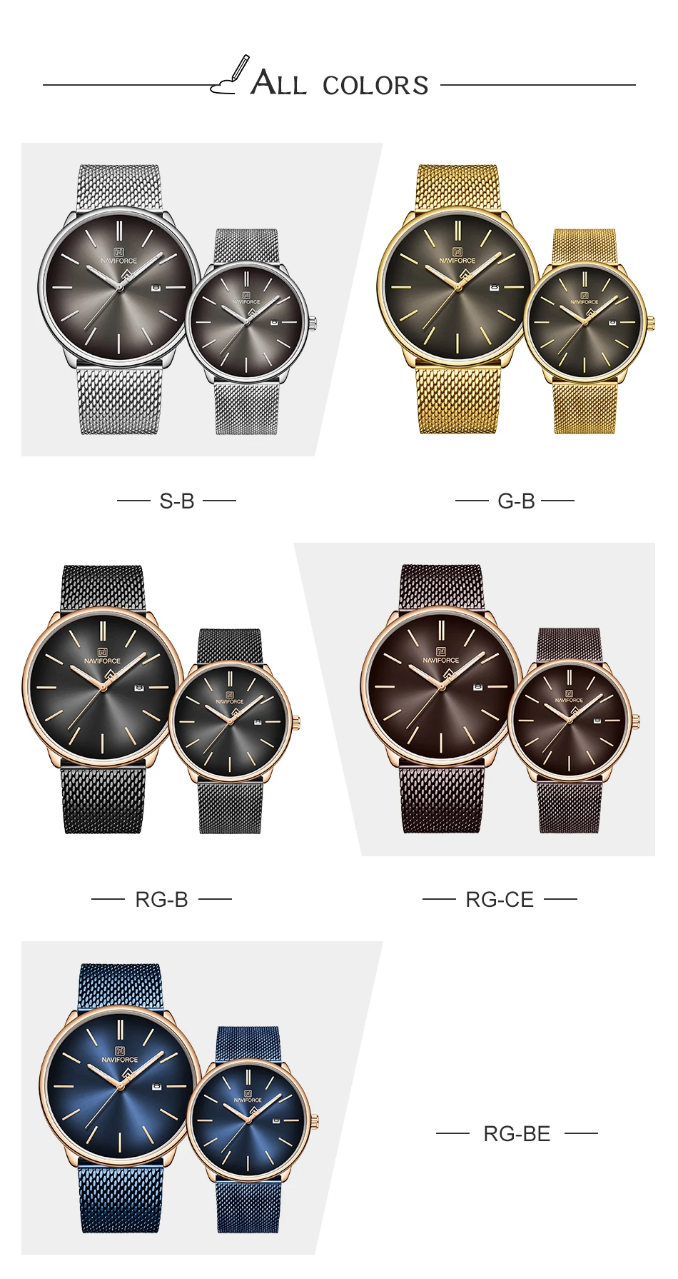 Продукция включает: 100% Новые оригинальные часы * 1, гарантийный талон * 1, Инструкция * 1 Мы обеспечиваем прямые поставки и оптовые поставки Часы для пар, часы для влюбленных, женские наручные часы, часы для пар naviforce, подарки для мужчин, часы для пар, мужские и женские часы 2019, водонепроницаемые часы для влюбленных, часы для пар Товар: оригинальные часы NAVIFORCE для пар с отображением календаря Тип часов: мужские часы, часы с датой, часы для пар, часы для влюбленных, деловые часы, кварцевые часы, аналоговые часы, повседневные часы, модные часы, Relojio Masculino, Montre Homme