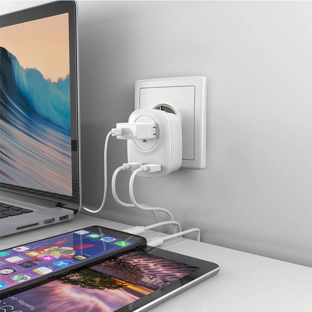 European Plug Adapter with 2 USB Ports and 1 US AC Outlet