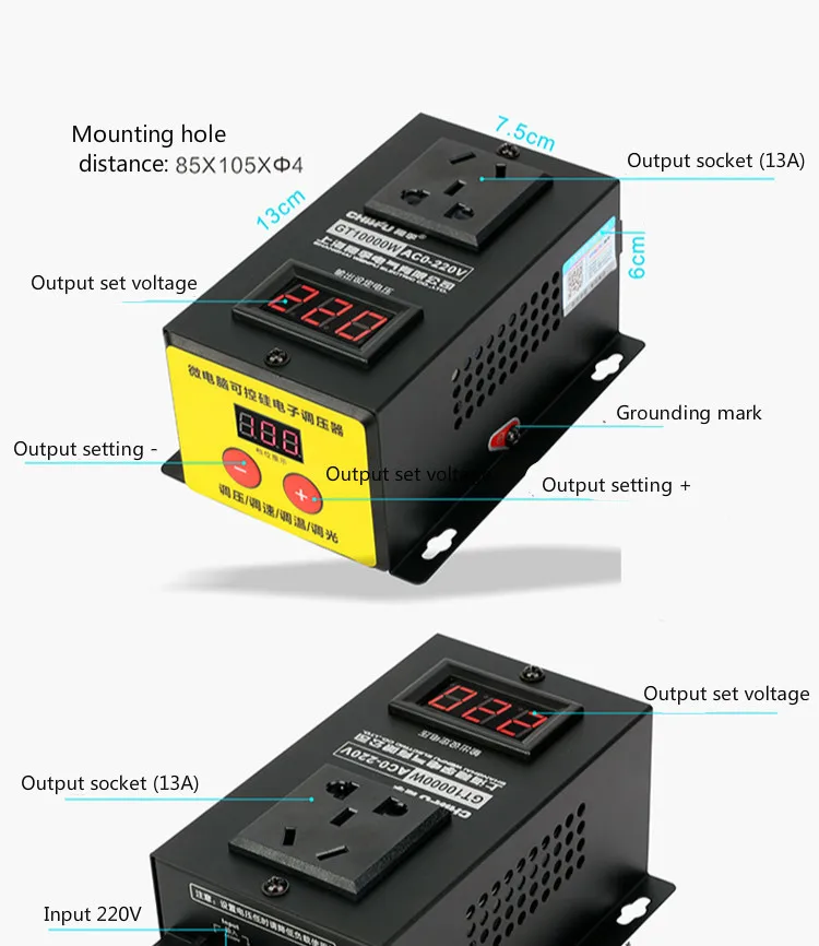 Выходное напряжение: 10-220 В переменного тока (выходное напряжение меньше входного напряжения)