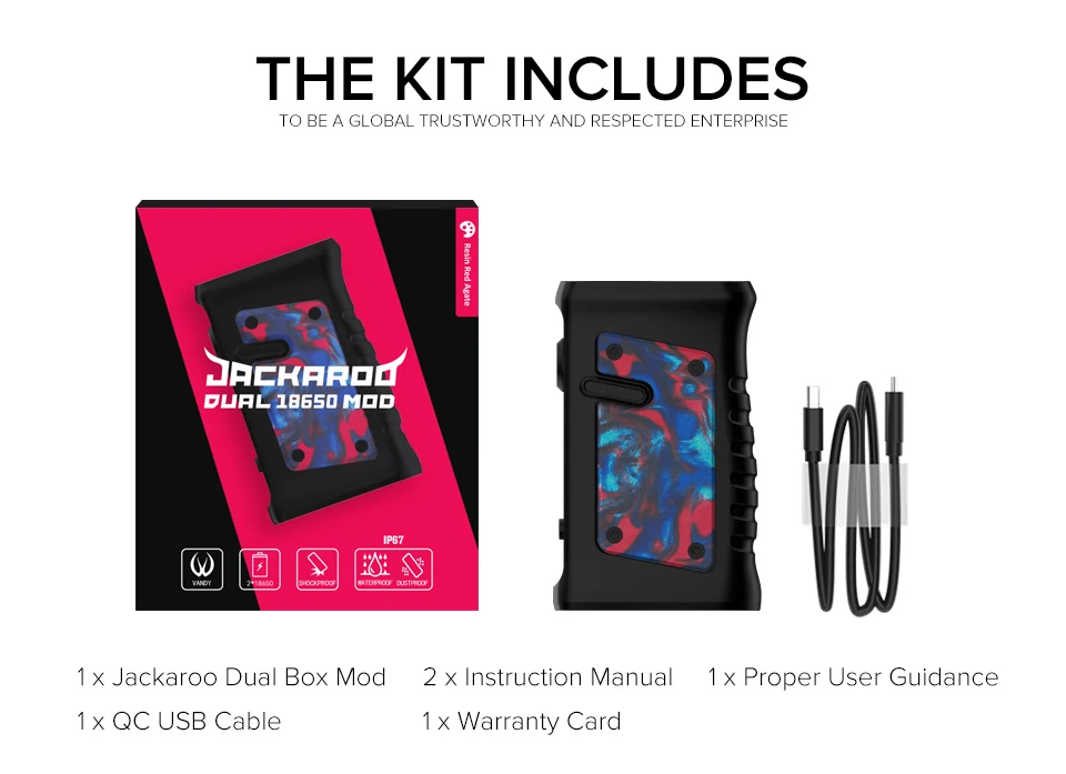 1 x Jackaroo двойной бокс мод 1 x USB-кабель QC 2 x Инструкция по эксплуатации 1 х гарантийный талон 1 x надлежащая инструкция по эксплуатации