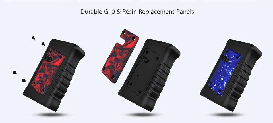 Размер: 90,5x29,7x56,8 мм Диапазон сопротивления: 0,05-3 ом Аккумулятор: 2x18650 Выходная мощность: 5-188 Вт Цвет: черный, черный обсидиан G10, синий фарфор из смолы, красный агат из смолы