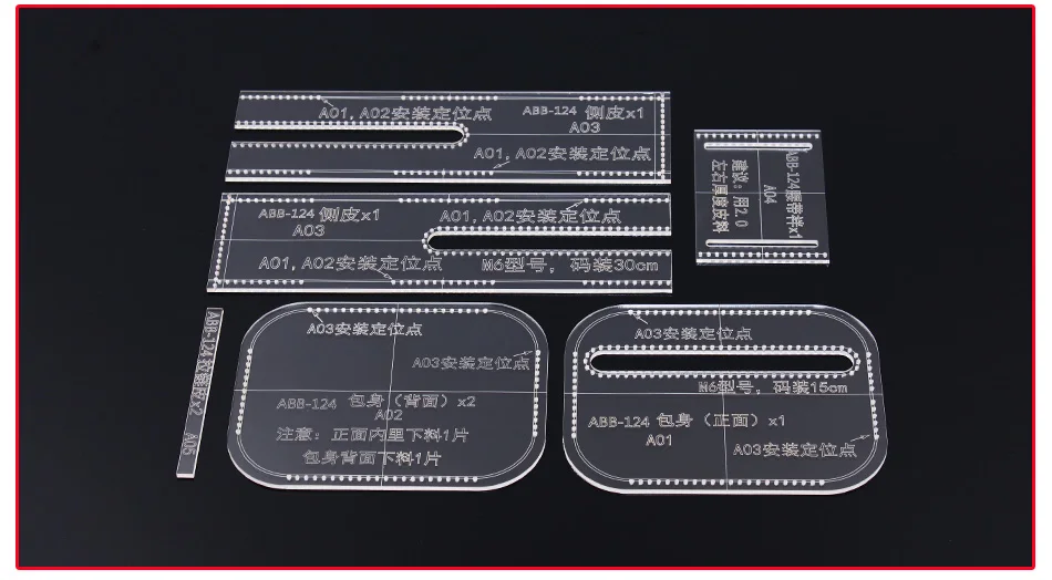 ---- 1. Мы используем акрил в качестве материала наших шаблонов. Прозрачные Акриловые шаблоны разработаны, чтобы дать кожаному мастеру преимущество в том, что он может точно найти и посмотреть на кожаную поверхность для оптимального размещения. Это также позволяет избежать дефектов, прежде чем резать, избегая отходов.