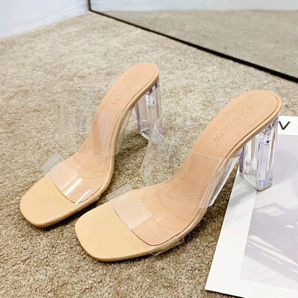 Женские прозрачные шлепанцы; Босоножки; Летняя обувь; Прозрачные туфли-лодочки; Прозрачные туфли на высоком каблуке