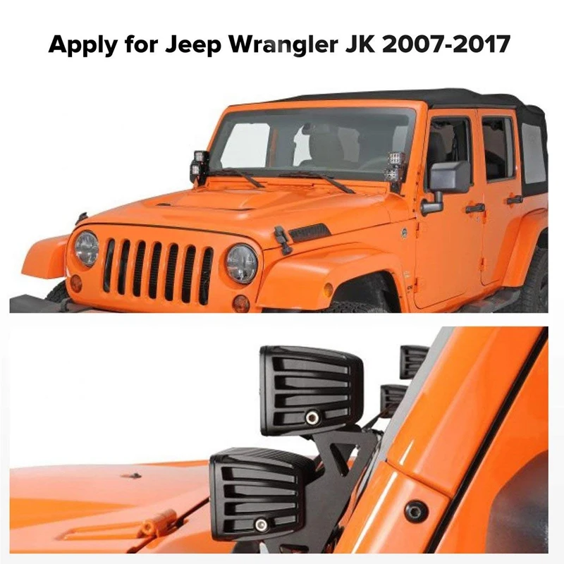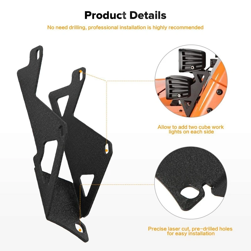 1Pair Car Dual Lower Windshield LED Light Mounts Brackets Kit for Dual LED Light Cube 07-16 Jeep JK Wrangler