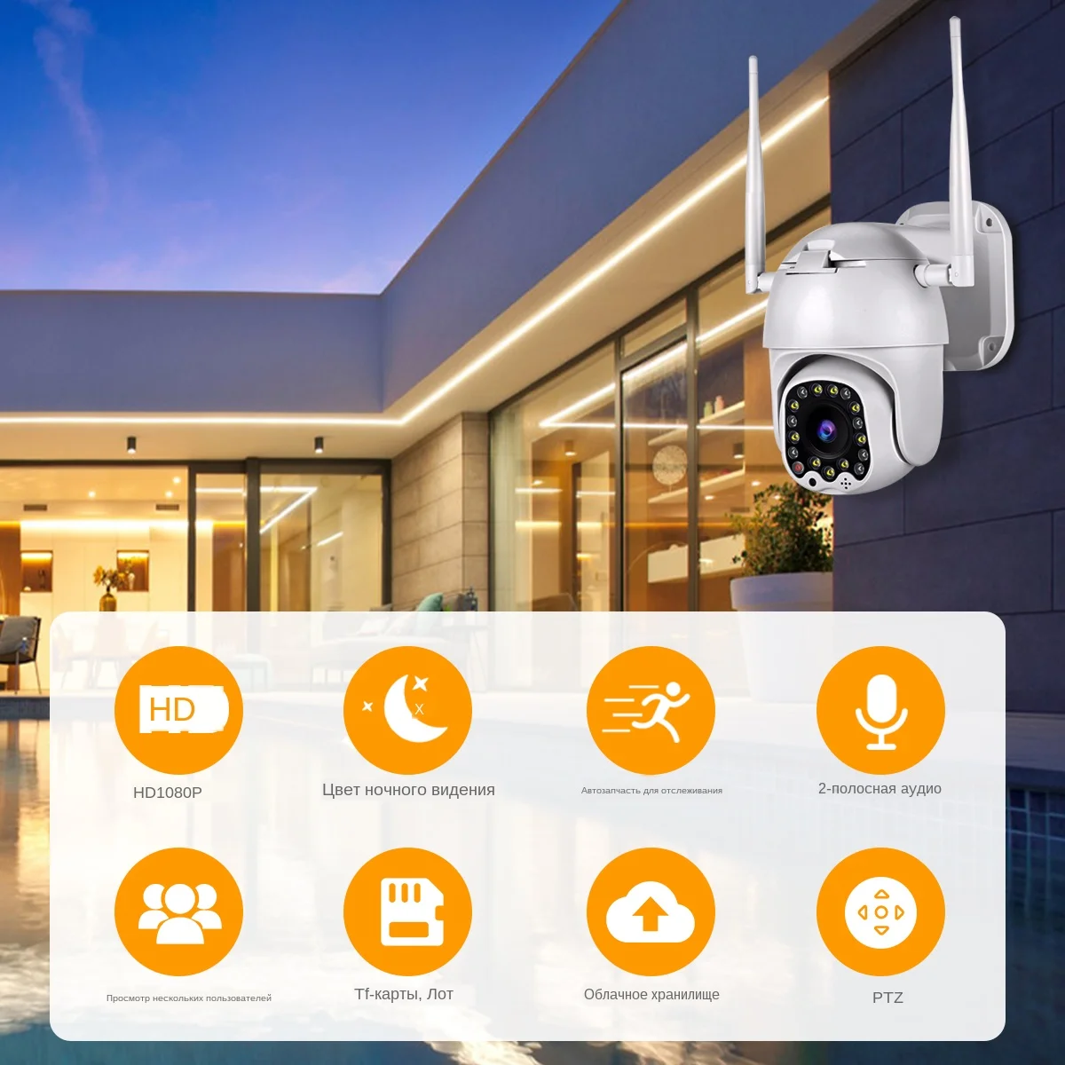 Поддерживает до 128 ГБ tf-карту и предоставляет услуги облачного хранения (необходимо оплатить дополнительные расходы), вы можете выбрать любой или оба для хранения ваших записей и избежать риска потери отснятого материала с карты.