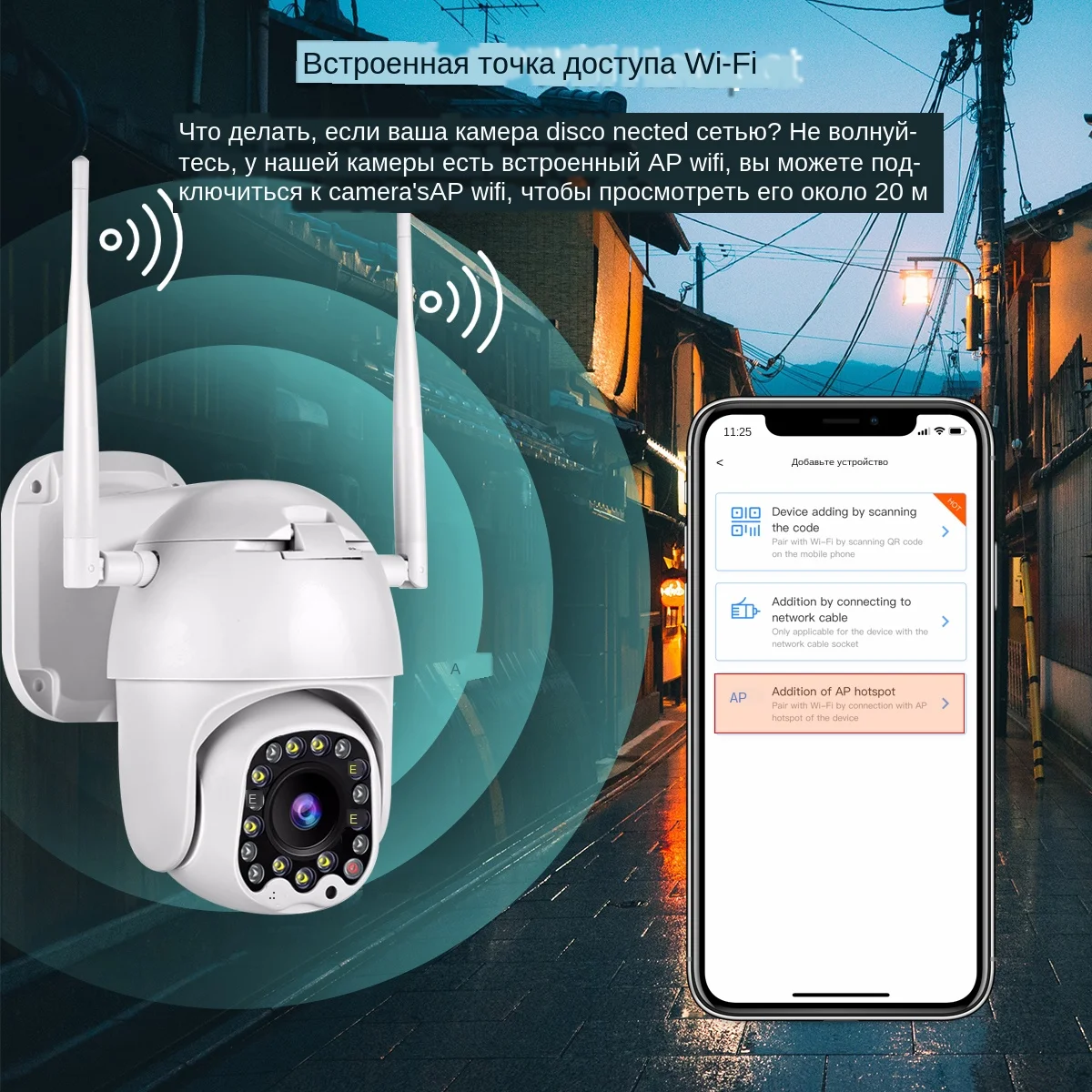 Что, если ваша камера отключится от сети? Не волнуйтесь, наша камера имеет встроенный AP wifi, вы все еще можете подключиться к камере AP wifi, чтобы просмотреть его около 20 м.
