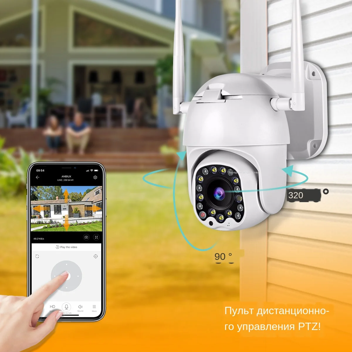 320 ° PTZ панорамирование/наклон вращение по вертикали 90 ° может контролировать угол поворота через приложение YCC365 Plus.