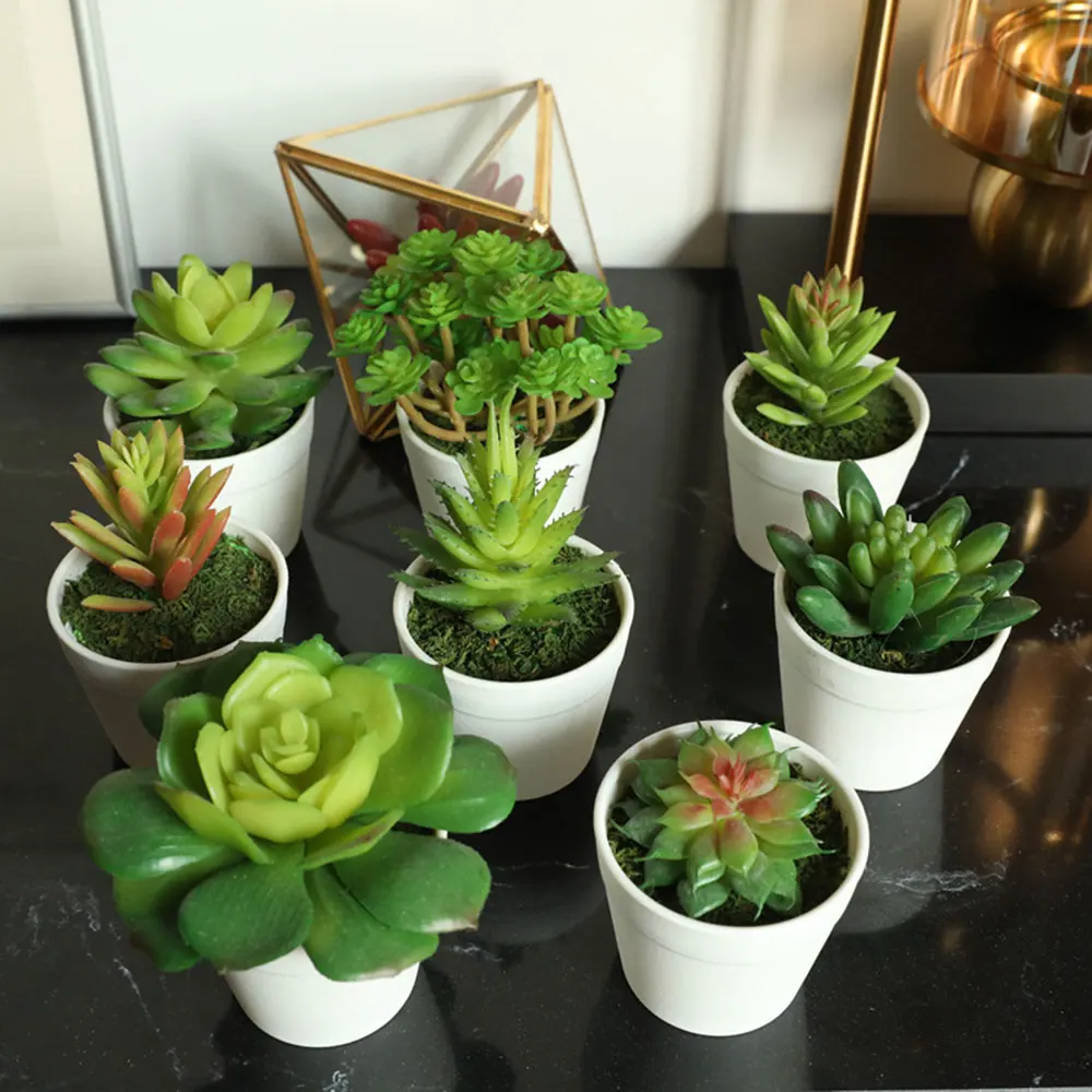Искусственные растения, цветочный горшок, имитация суккулентов, мини бонсай в горшке, зеленые искусственные растения, украшение для домашнего свадебного стола