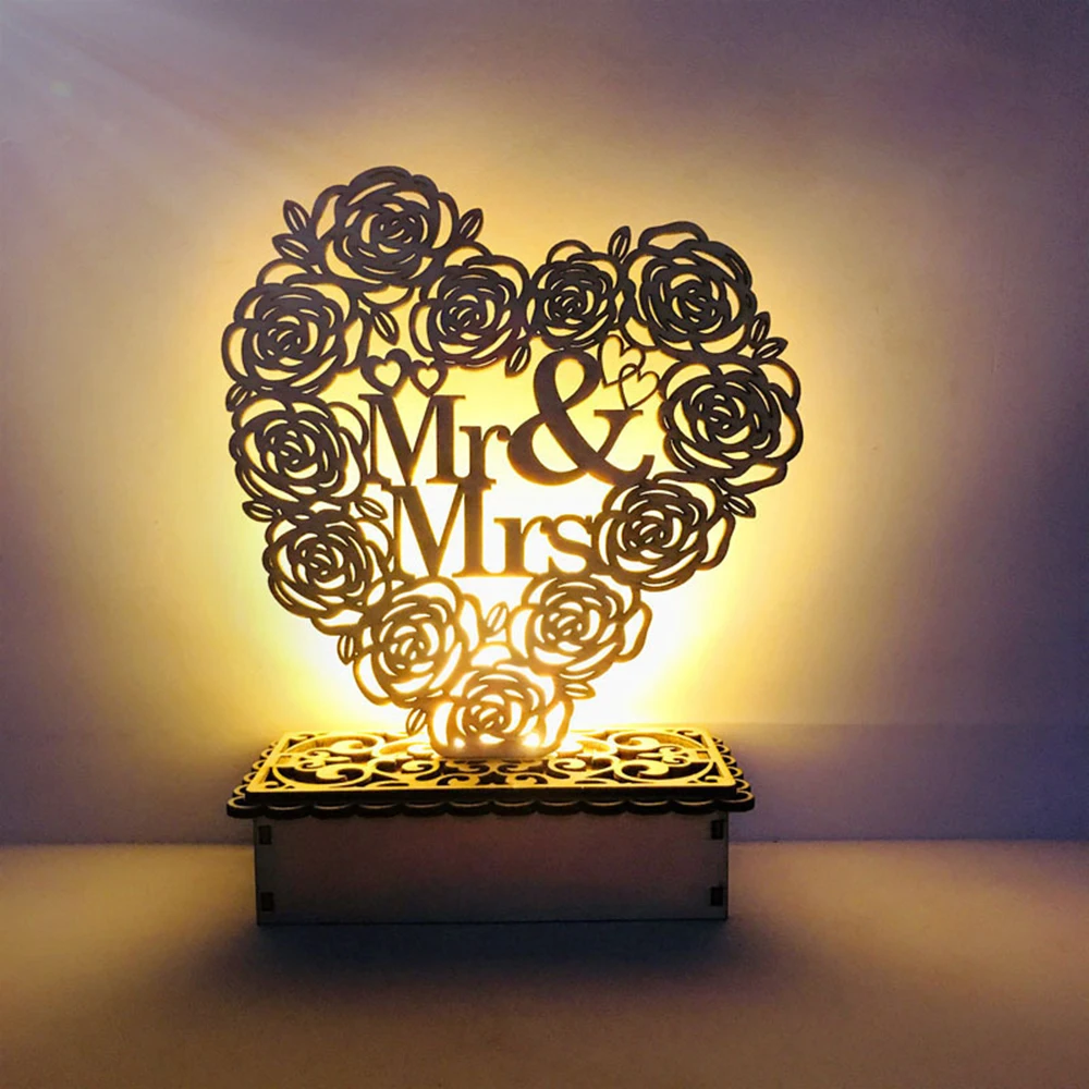 Деревянные украшения Mr & Mrs Свадебные украшения Свадебные сувениры в деревенском стиле подарки DIY свадебный подарок на День святого Валентина для подруги светодиодный ночной Светильник