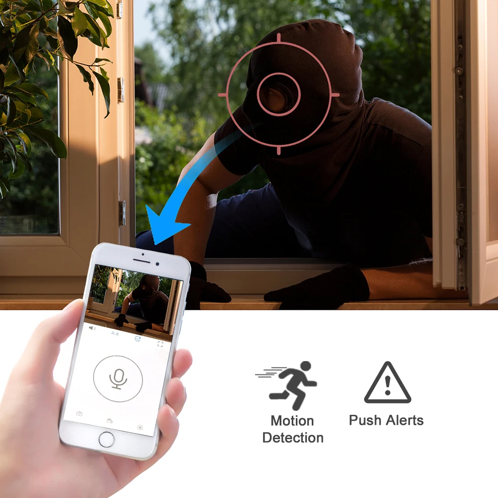 Особенности: Интеллектуальное обнаружение PIR: когда камера обнаруживает движение человека, она войдет в состояние записи в тысячу секунд и отправит наиболее точное сообщение тревоги в реальном времени на ваш мобильный телефон. ПоддержкаСнимки экрана смартфона.