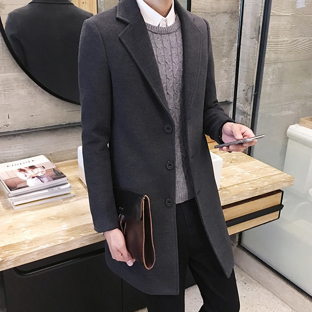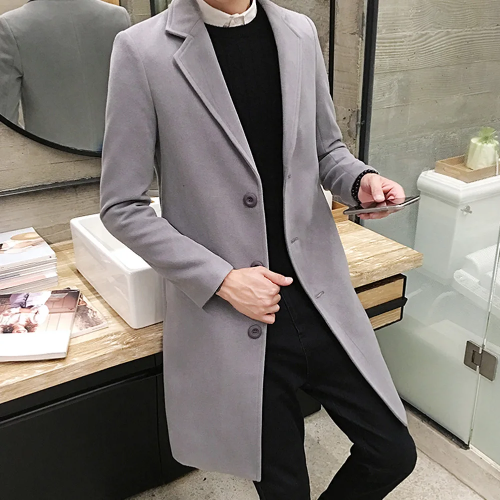 Мужской однотонный плащ с длинными рукавами и отложным воротником размера плюс