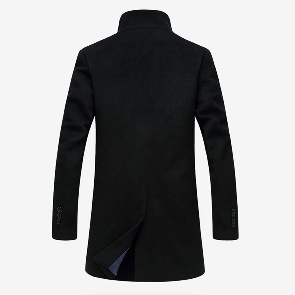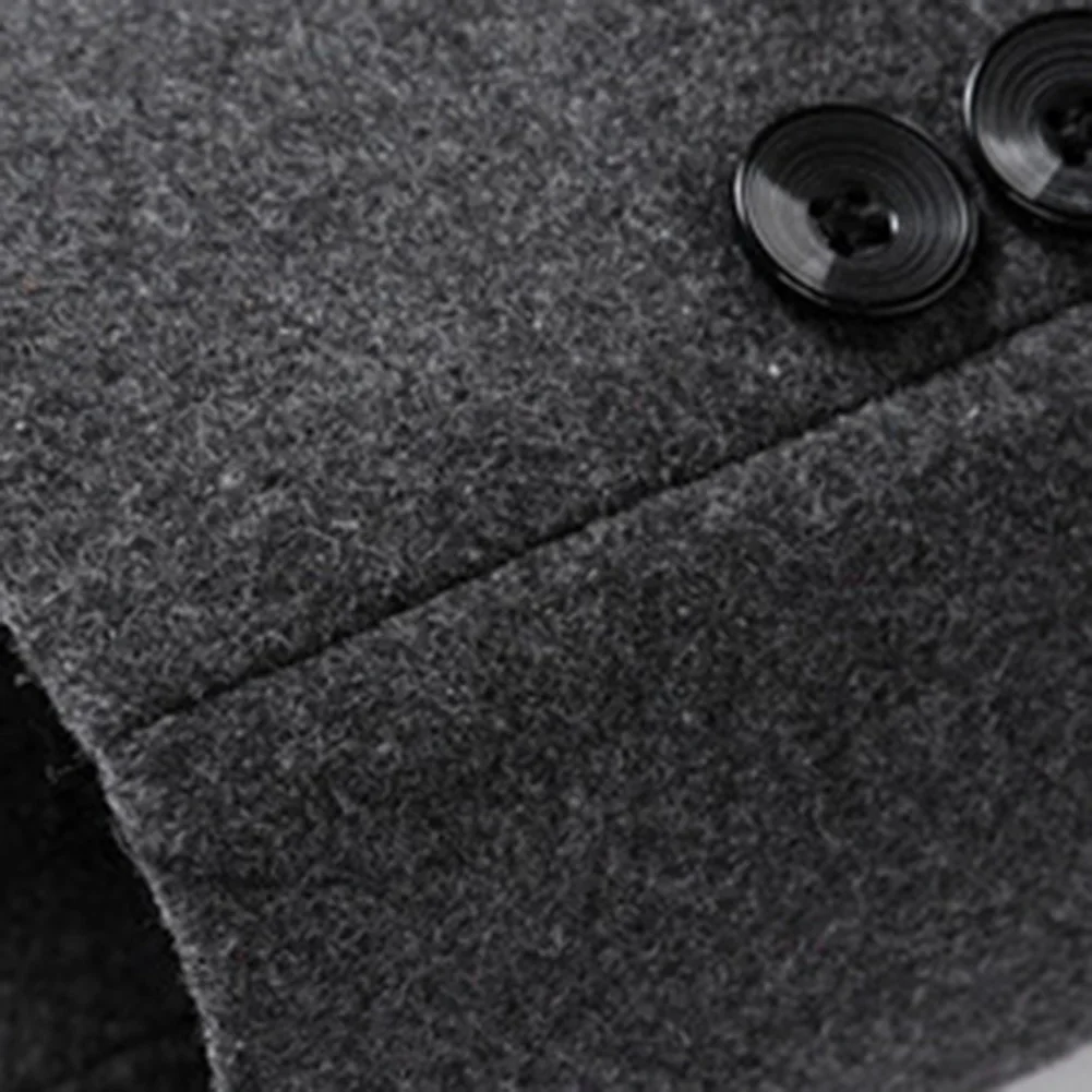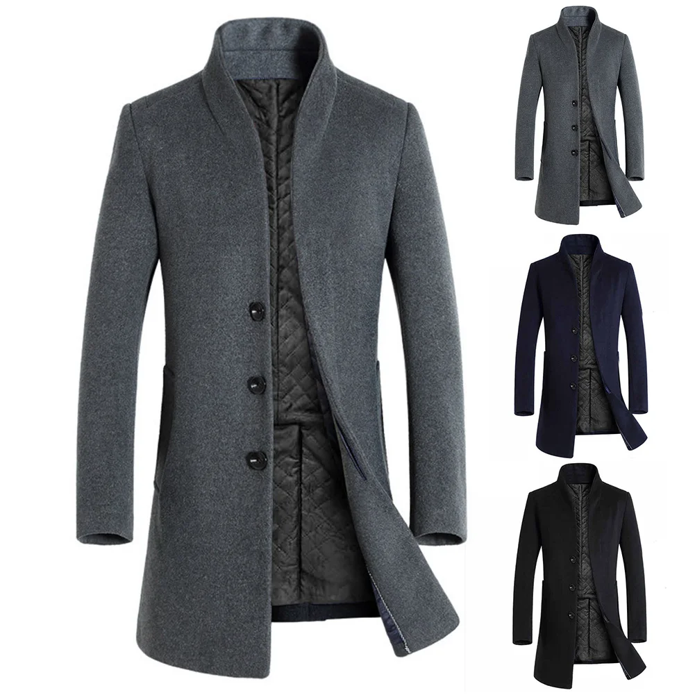 Мужской зимний теплый шерстяной Тренч с длинными рукавами и воротником-стойкой и карманами на пуговицах