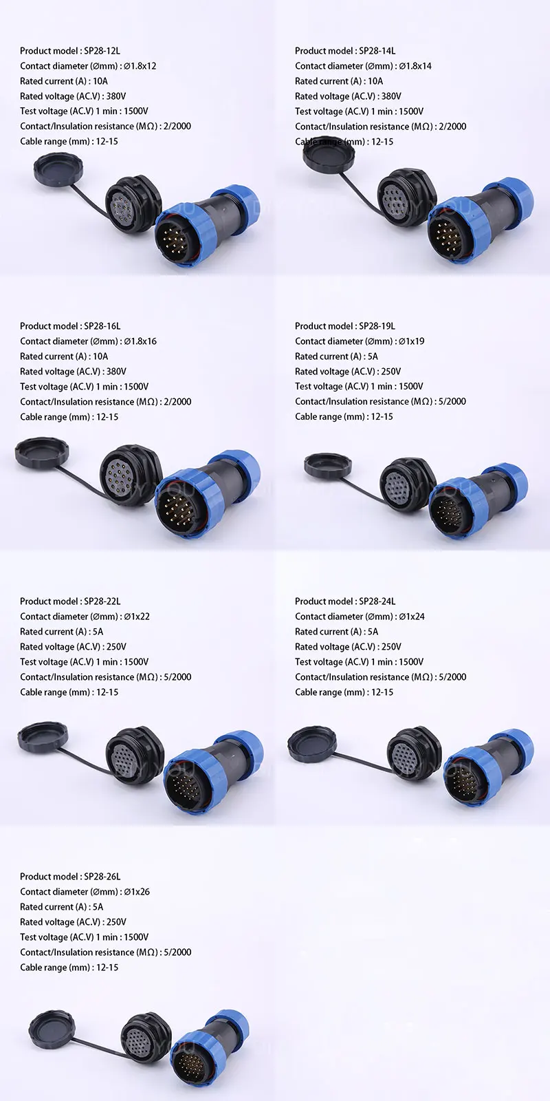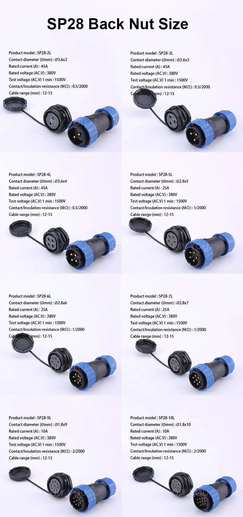 SP28 IP68 задняя гайка водонепроницаемый разъем 2/3/4/5/6/7/9/10/12/14/16/19/22/24/26 контактный разъем Электрический кабель авиационные разъемы Тип разъема: SP28 Тип задней гайки Количество контактов: 2/3/4/5/6/7/9/10/12/14/16/19/22/24/26 Pin Уровень водонепроницаемости: IP68 Возраст упаковки (комплект):1 разъем