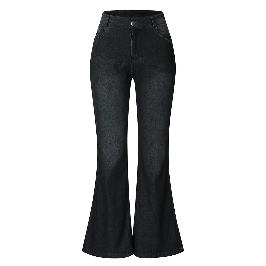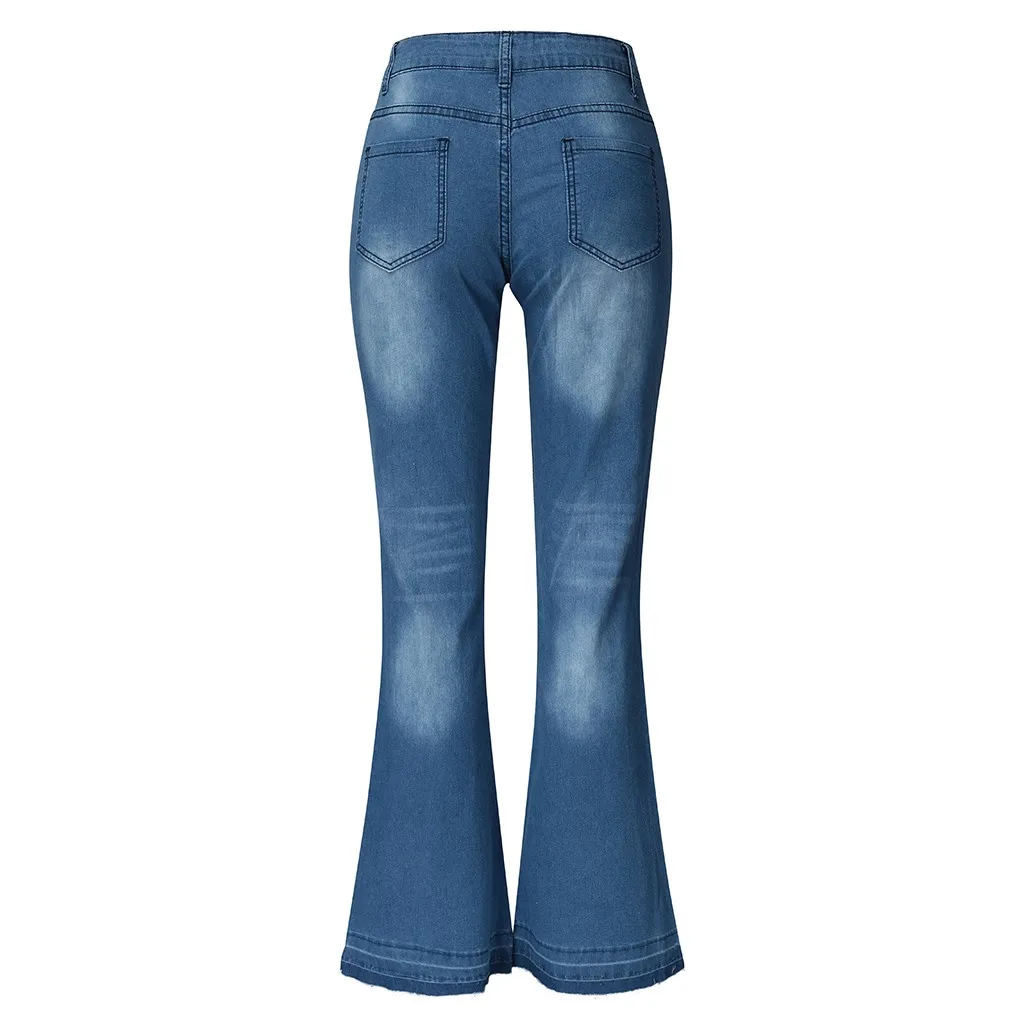Расклешенные женские джинсы со средней талией, Стрейчевые узкие джинсы