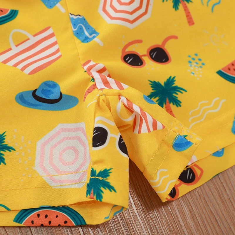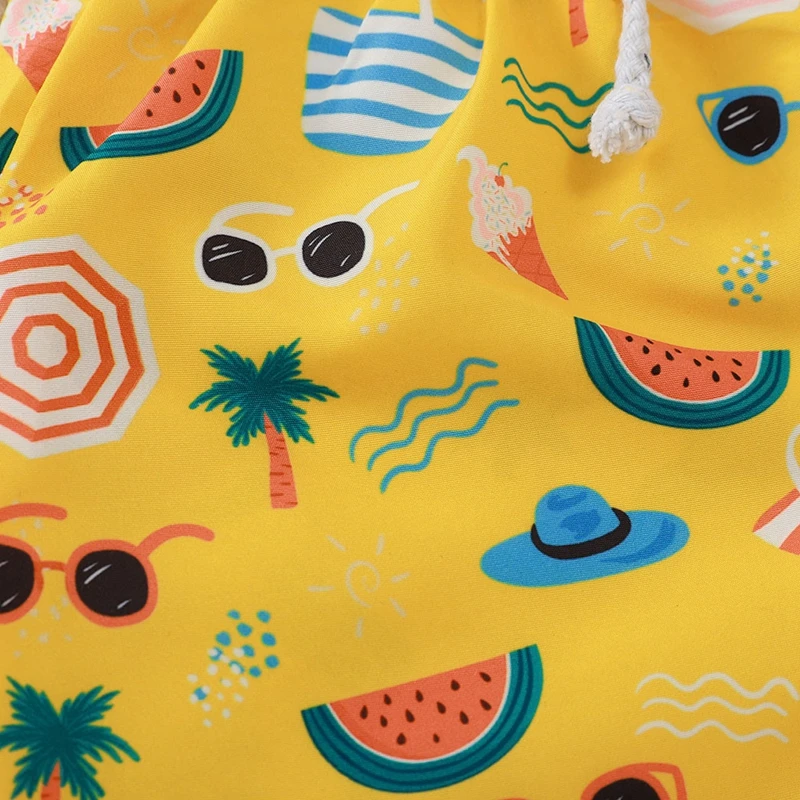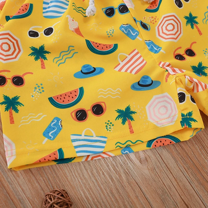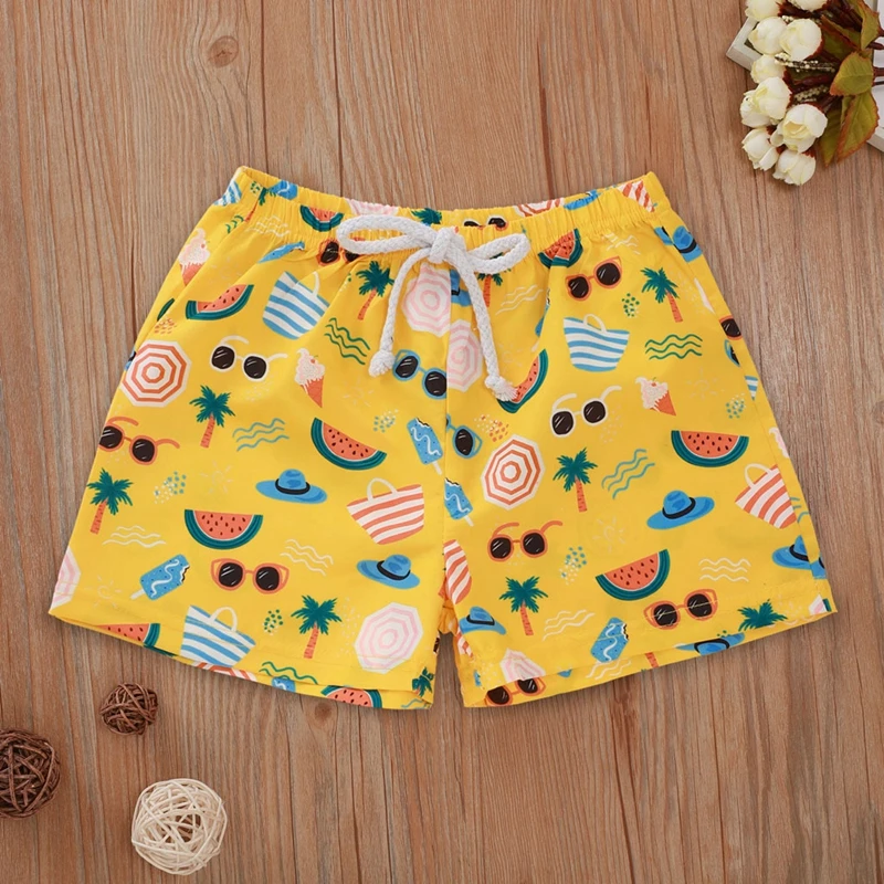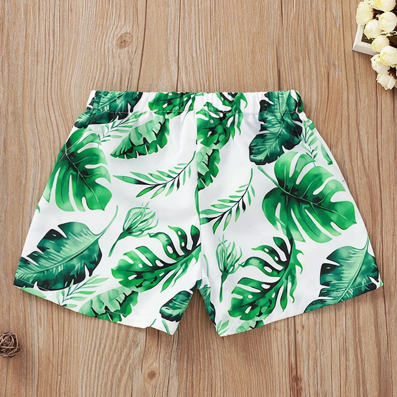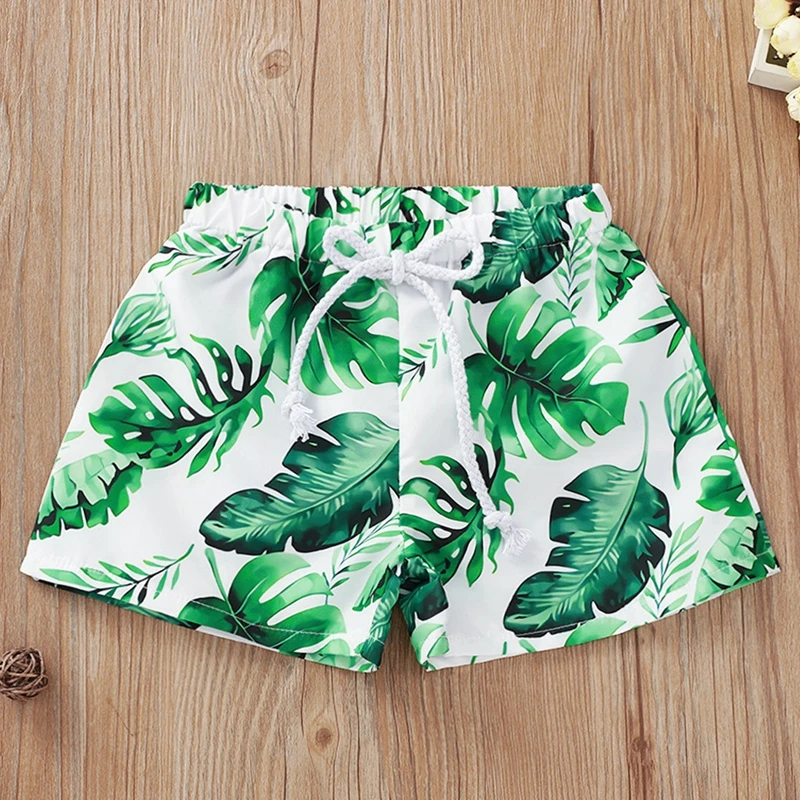 Детские купальники для маленьких мальчиков; Повседневные пляжные шорты с эластичным поясом и цветочным принтом; Летние плавки; Пляжные шорты с принтом тропического леса