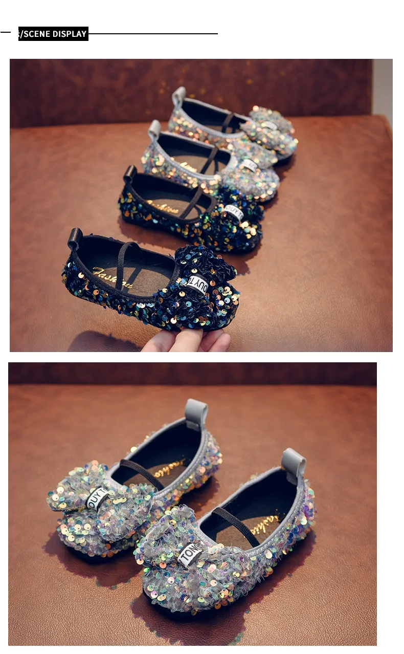 2020 Новая модная Корейская широкая весенне-осенняя кожаная обувь принцессы с блестящим бантом для девочек; Детская танцевальная обувь для девочек; Детские кроссовки