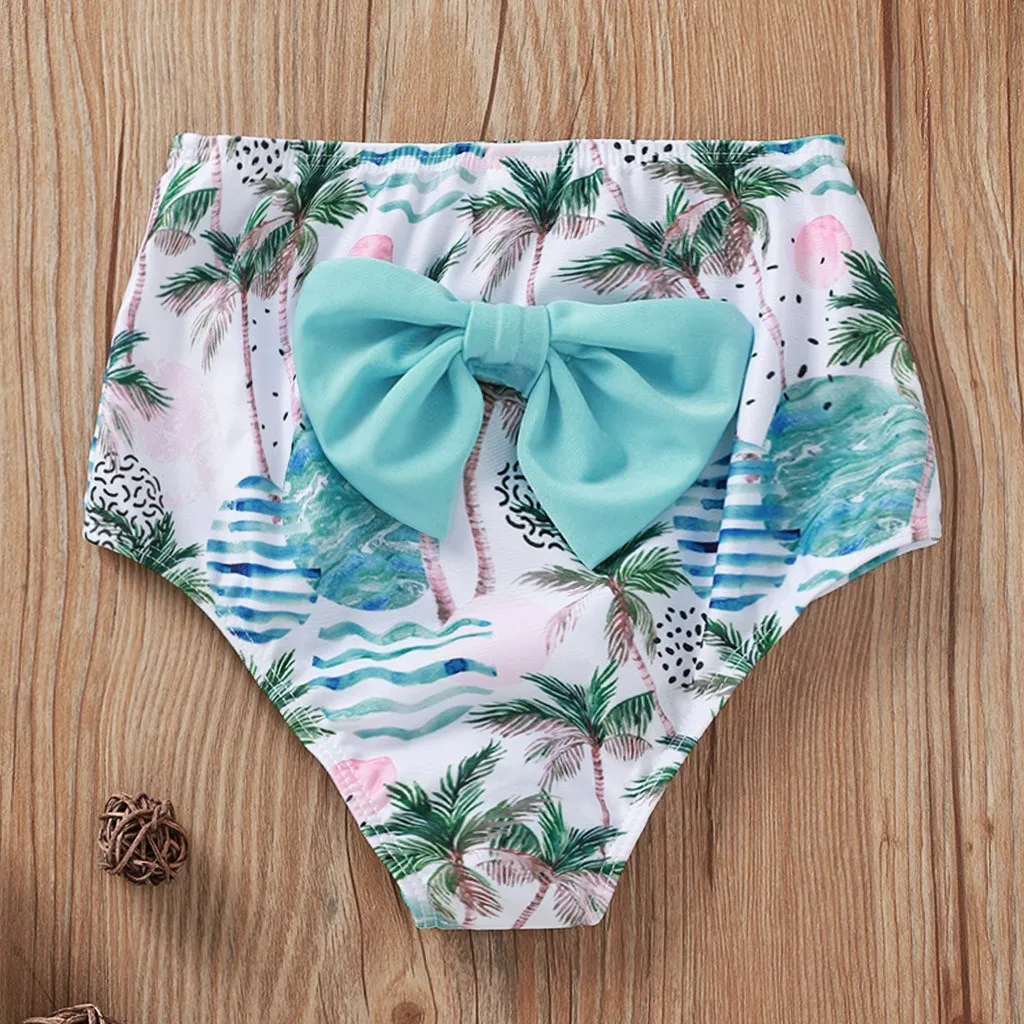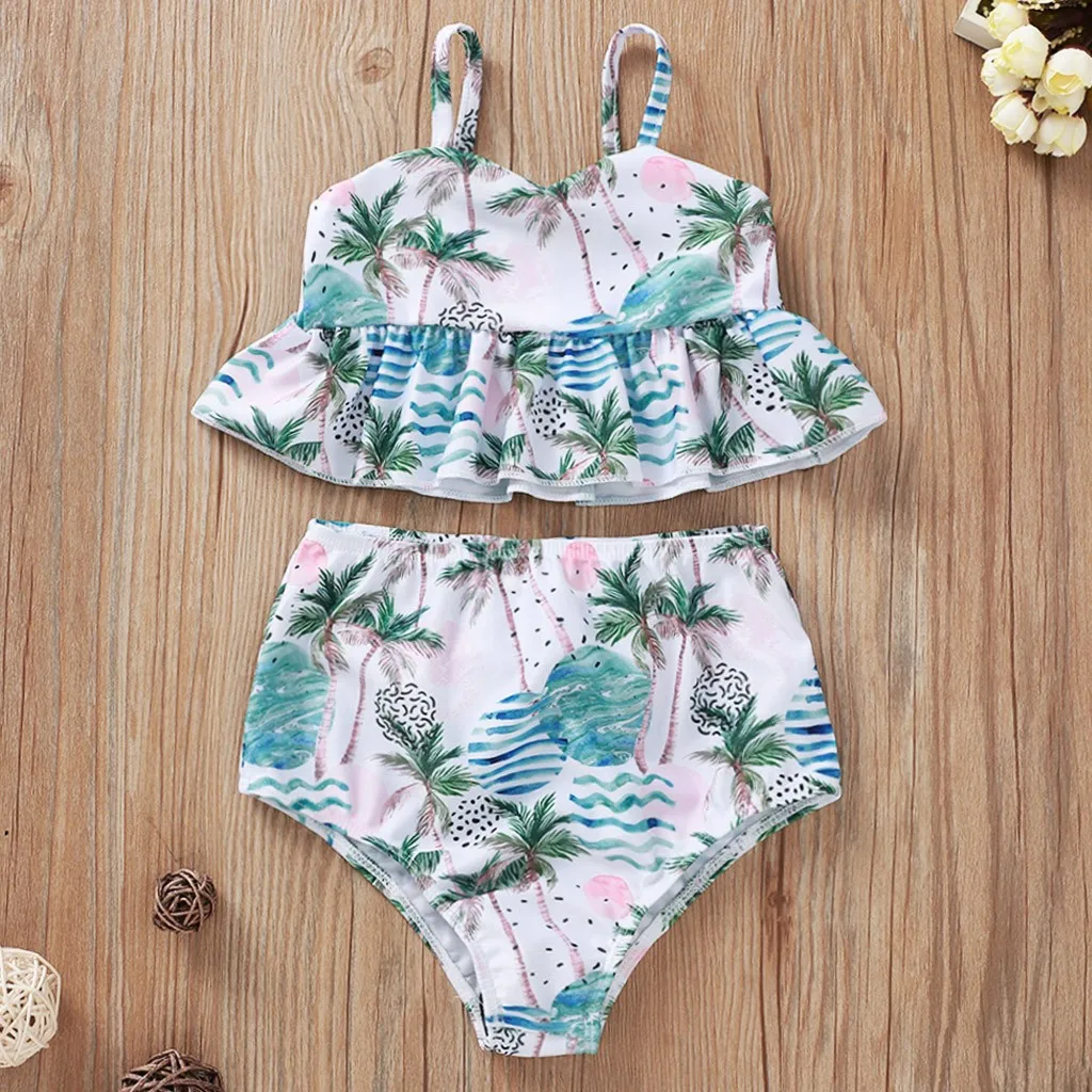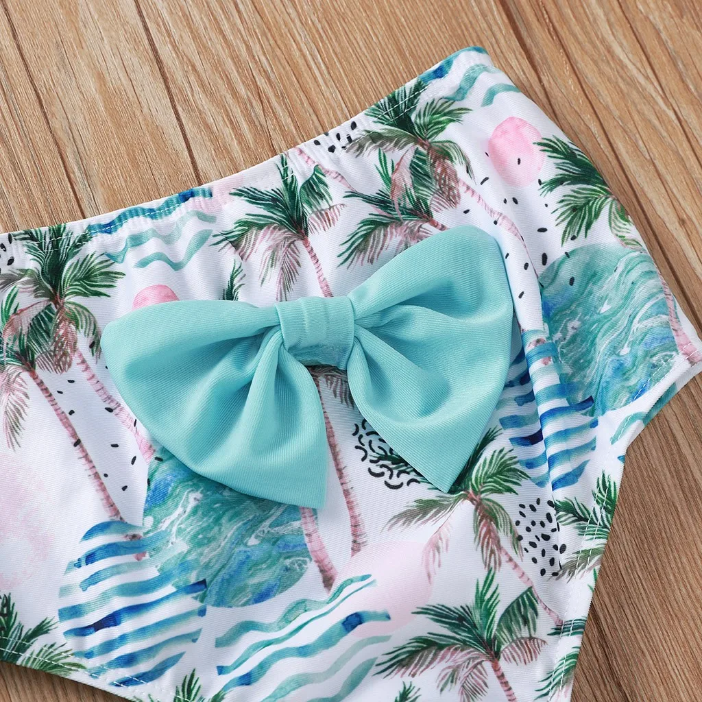 Детский летний купальник-Бикини на подтяжках с принтом дерева для маленьких девочек, купальный костюм, комплект
